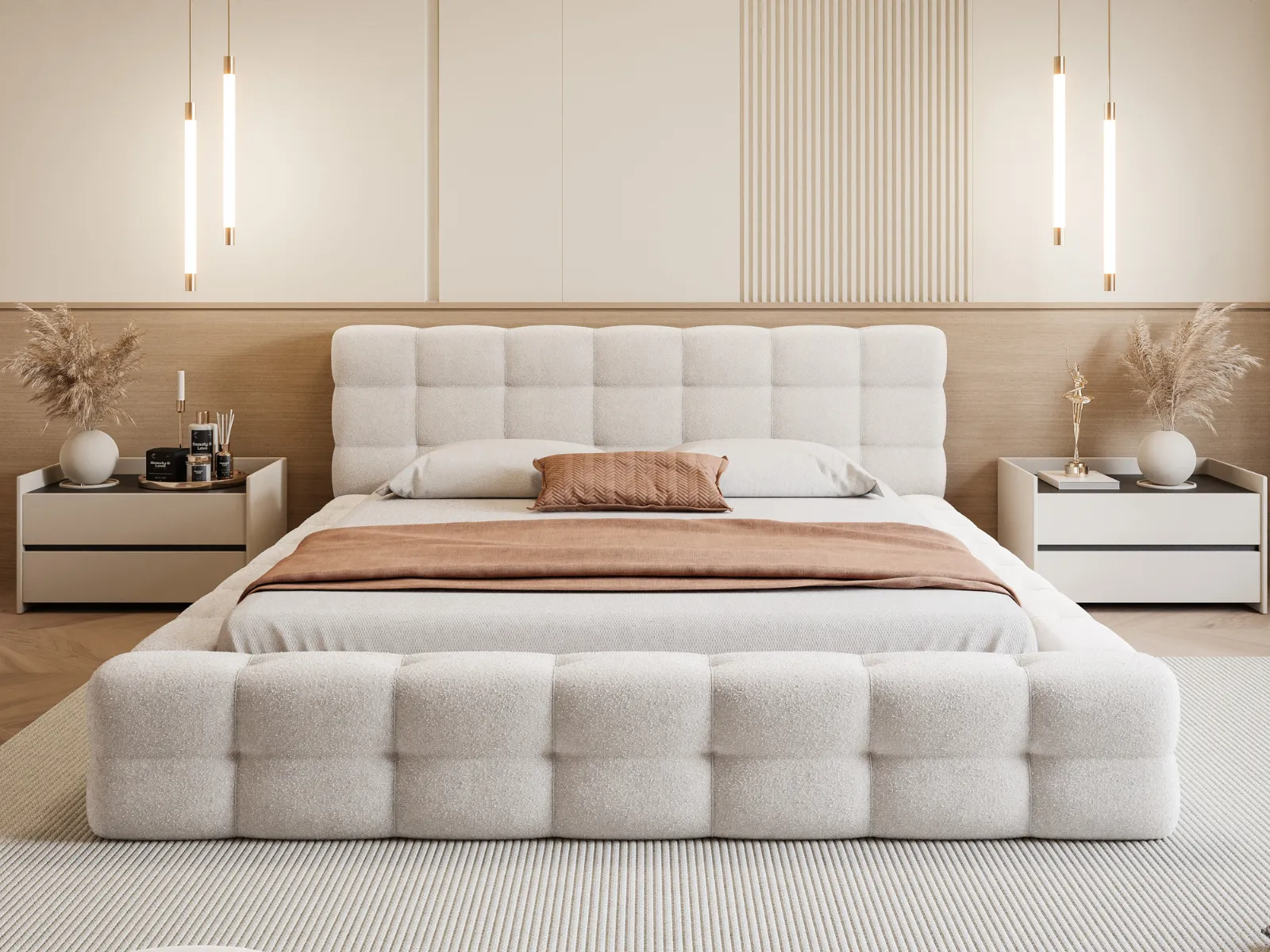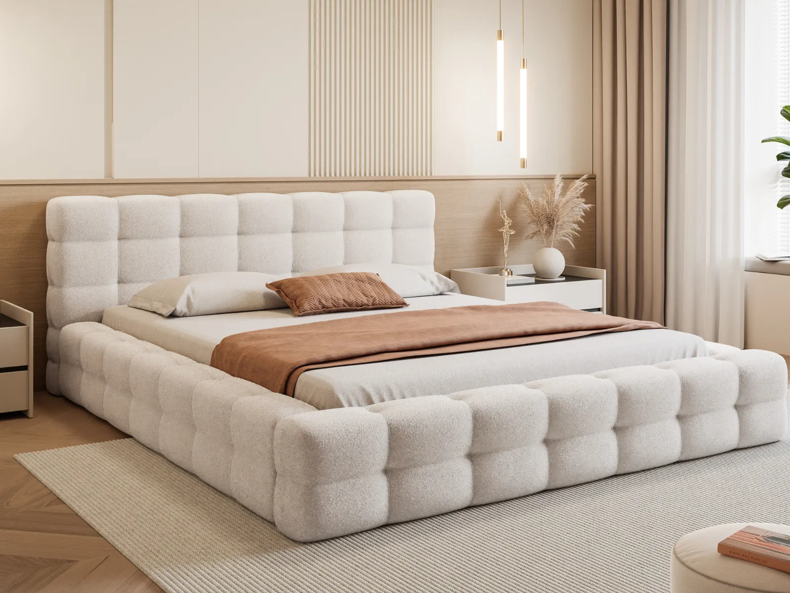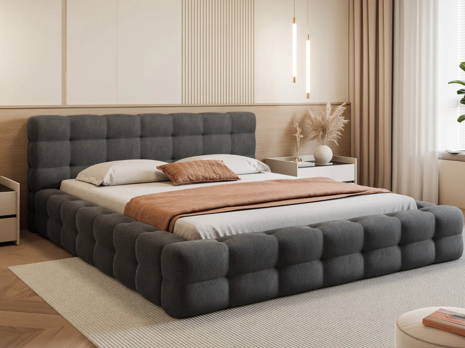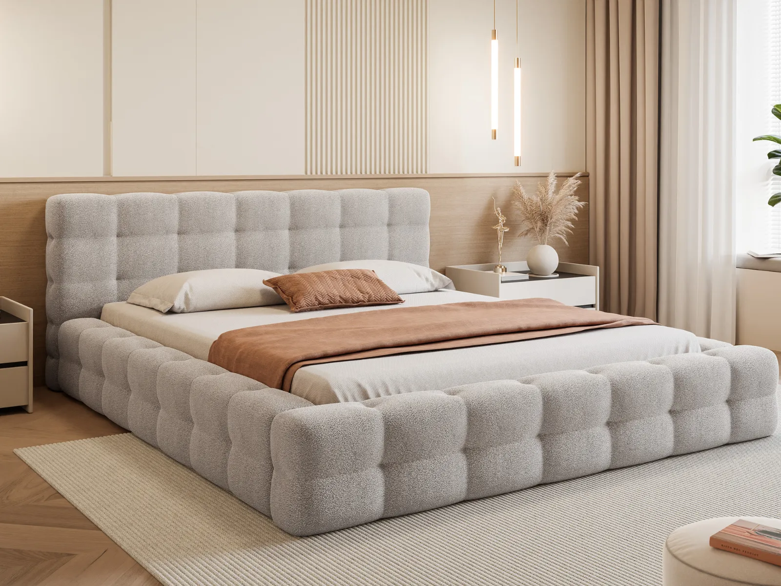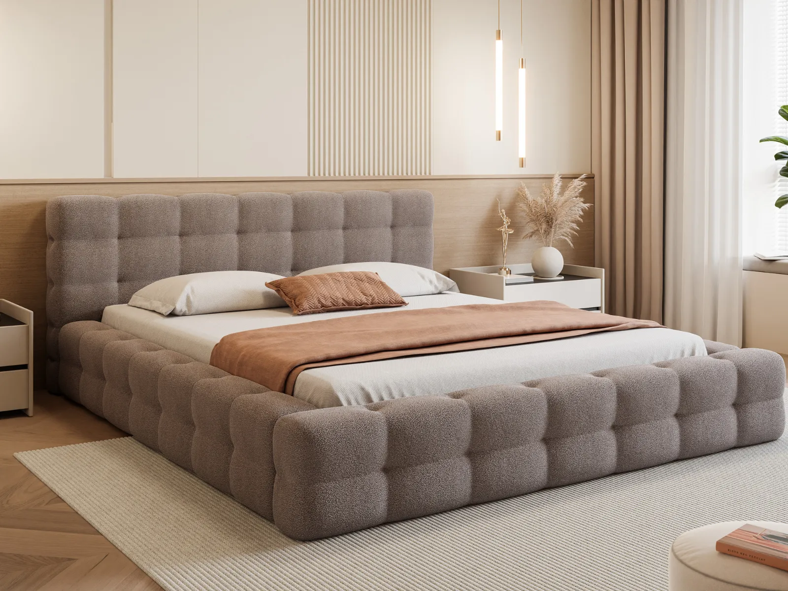 Z łóżkiem tapicerowanym Laris Twoja sypialnia zyska wyjątkowy charakter. Harmonijne proporcje, miękkie tapicerowanie i precyzyjne wykończenie sprawiają, że to model łączący luksusowy wygląd, wygodę i trwałość. Idealny dla osób, które cenią komfortowy sen i eleganckie detale w swoim otoczeniu.