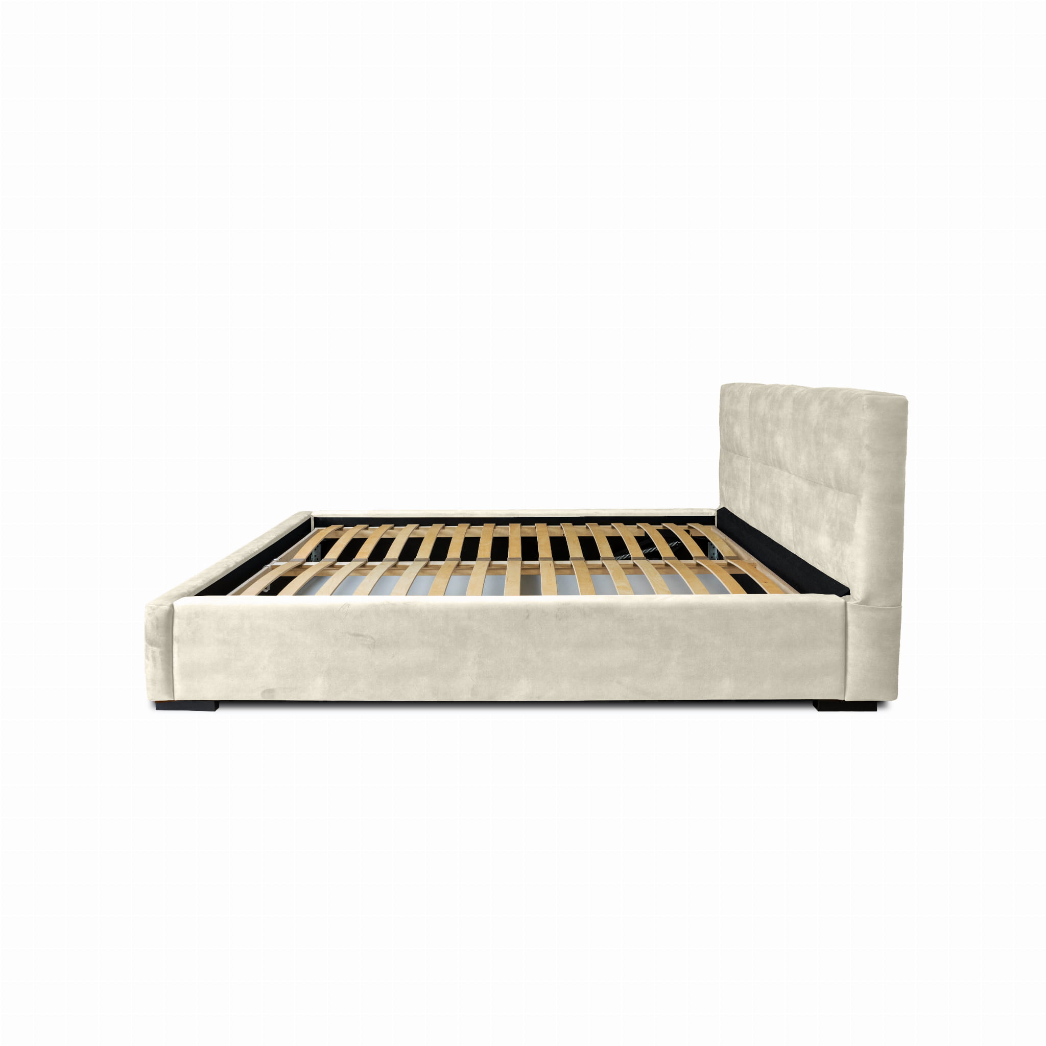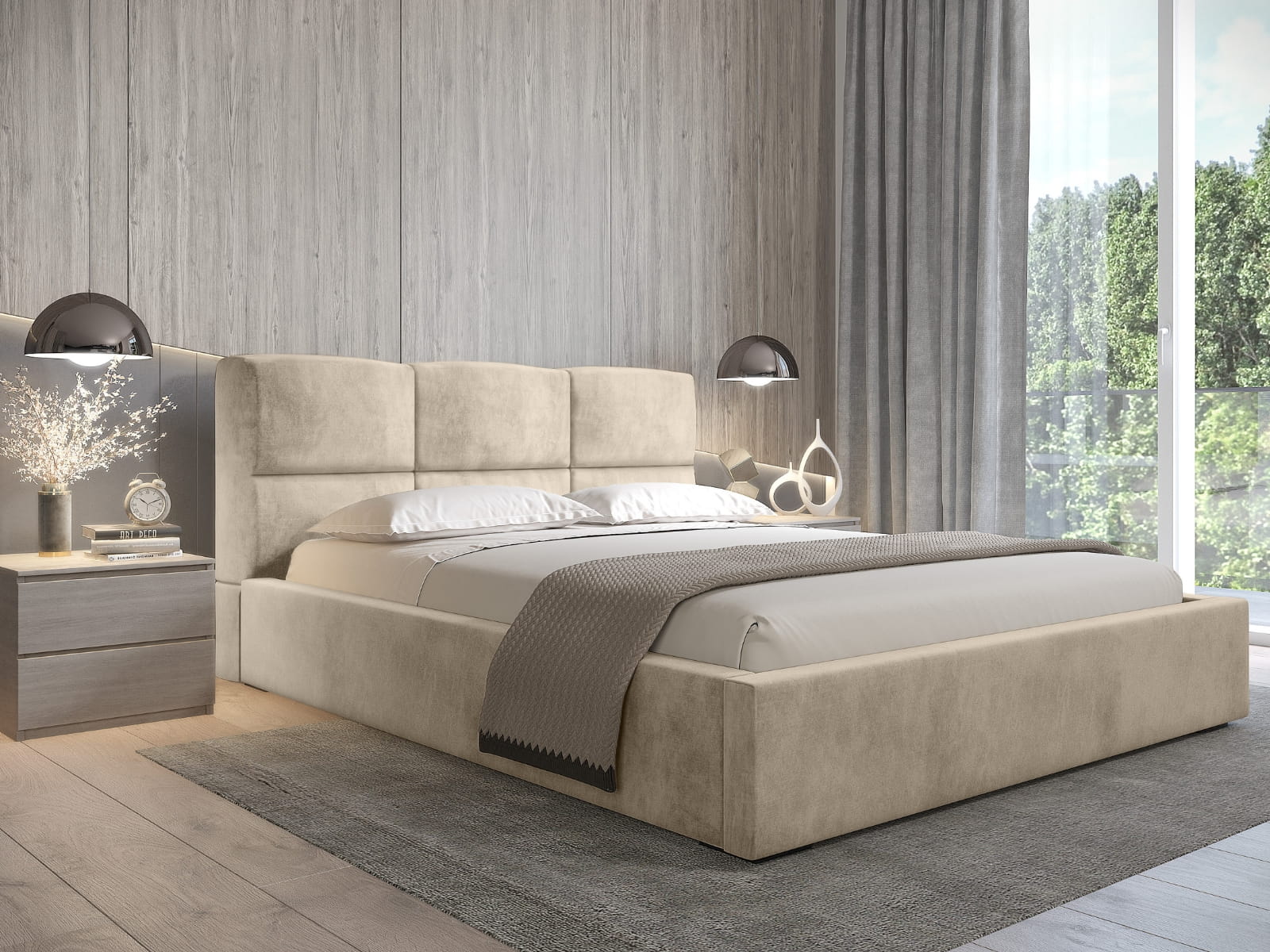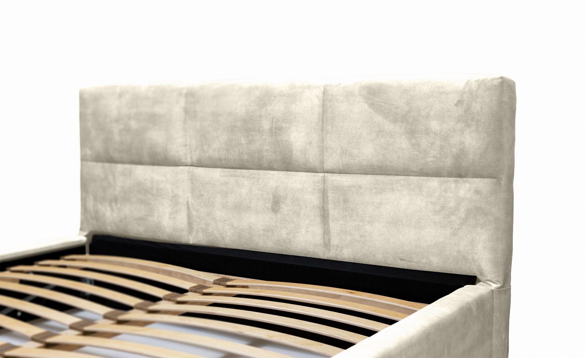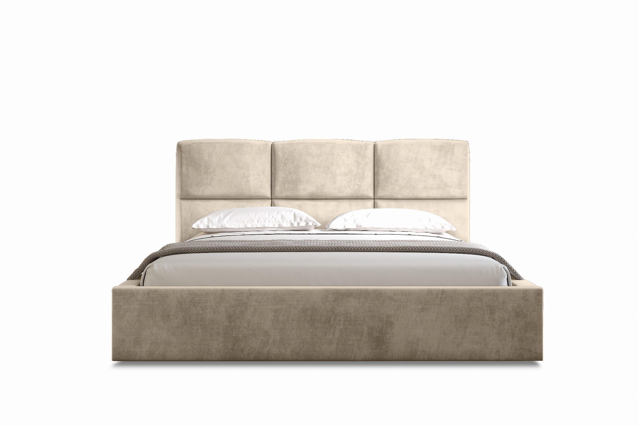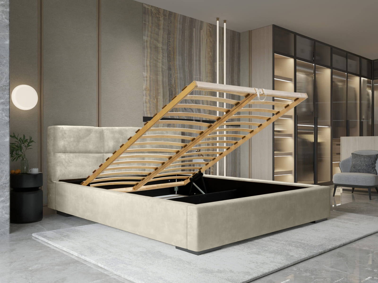 Łóżko tapicerowane 140x200 LEMON z pojemnikiem na pościel i stelażem beżowy welur
