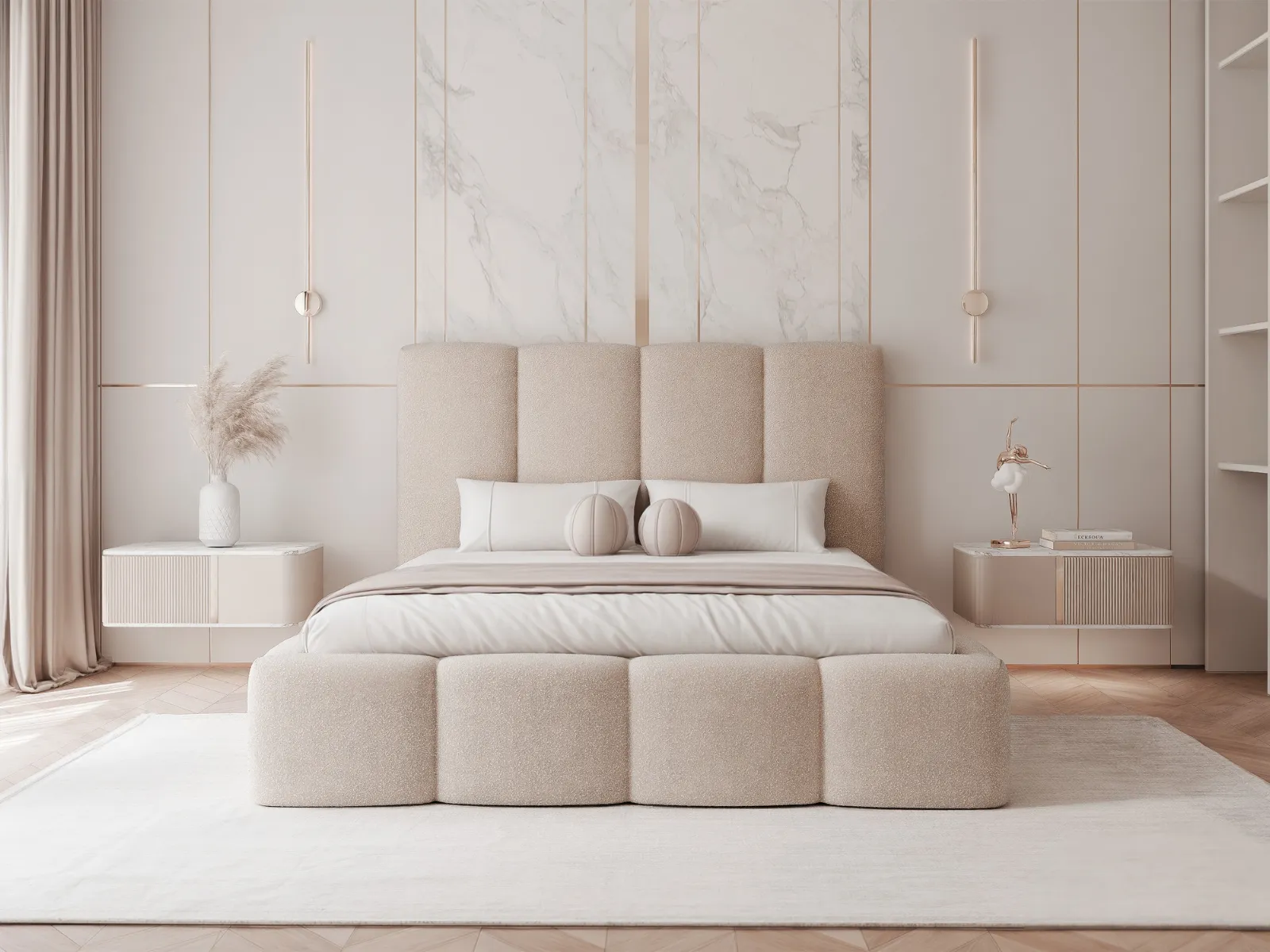 Z łóżkiem tapicerowanym Leno stworzysz przestrzeń pełną spokoju i stylu. Jego dopracowana forma i delikatna tapicerka nadają sypialni wyjątkowego charakteru, a możliwość personalizacji sprawia, że to mebel, który idealnie wpisze się w każde wnętrze.