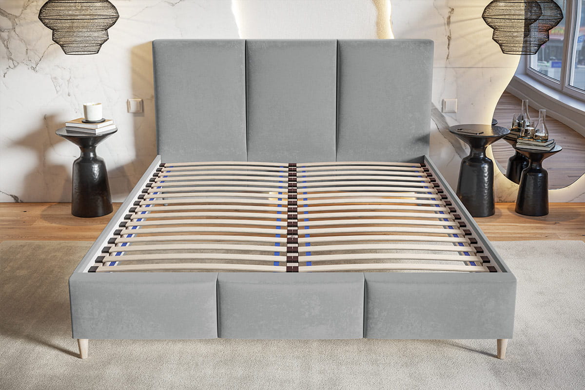 Łóżko Moniro wyróżnia się trwałością i solidnym stelażem, który zapewnia odpowiednie podparcie dla materaca, zwiększając komfort snu. Model ten idealnie pasuje do wnętrz utrzymanych w jasnych, naturalnych kolorach oraz skandynawskich aranżacjach, które cenią prostotę i funkcjonalność. Brak pojemnika na pościel sprawia, że łóżko jest lekkie i łatwe do przeniesienia, a jego forma dodaje wnętrzu przestronności.