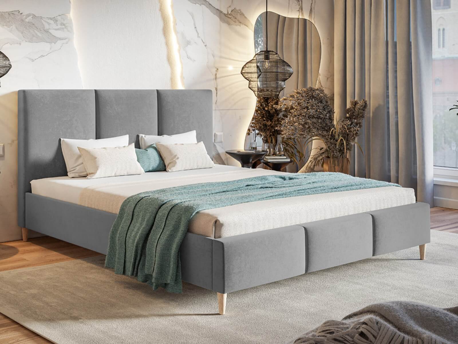 Łóżko tapicerowane 140x200 MONIRO ze stelażem na drewnianych nogach beżowy welur