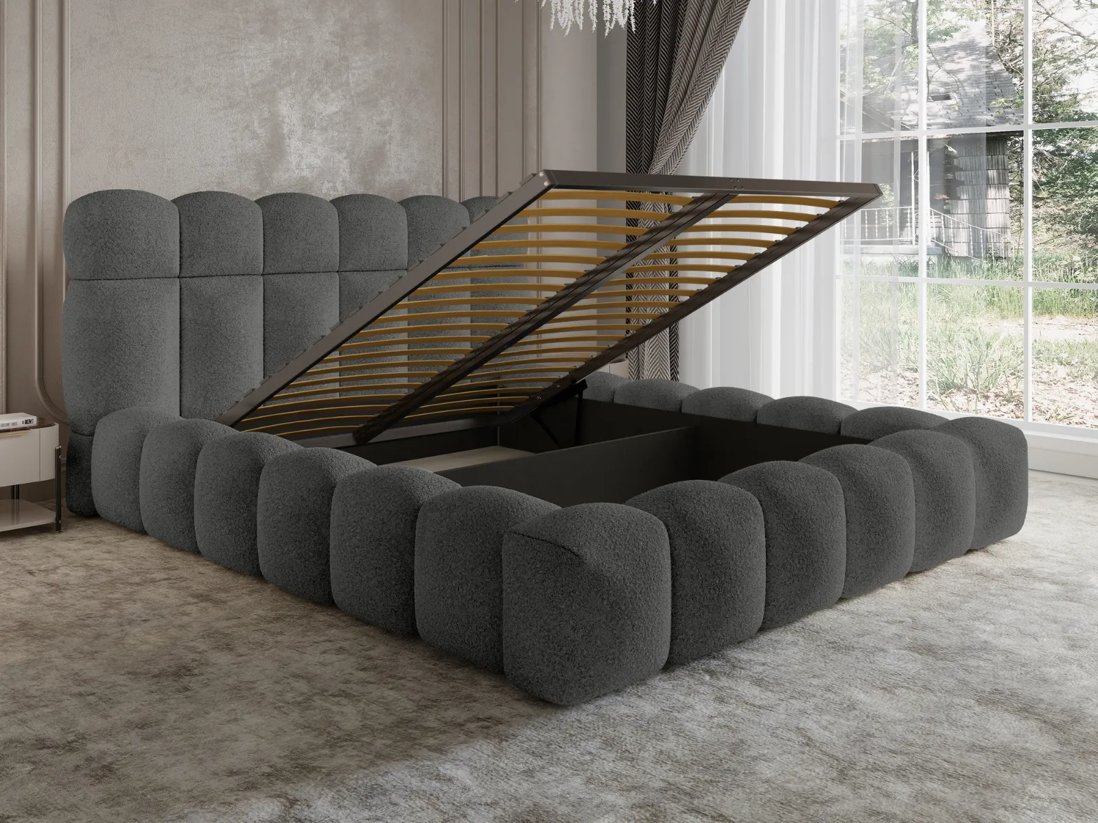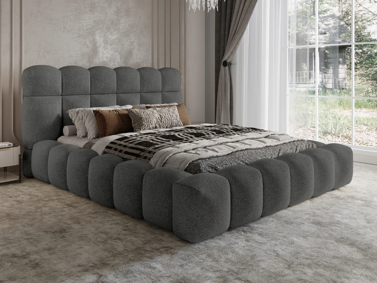 Wykonane w modnej tkaninie bouclé Quelle, łóżko wprowadza do sypialni ciepło, teksturę i styl, który nigdy nie wychodzi z mody.