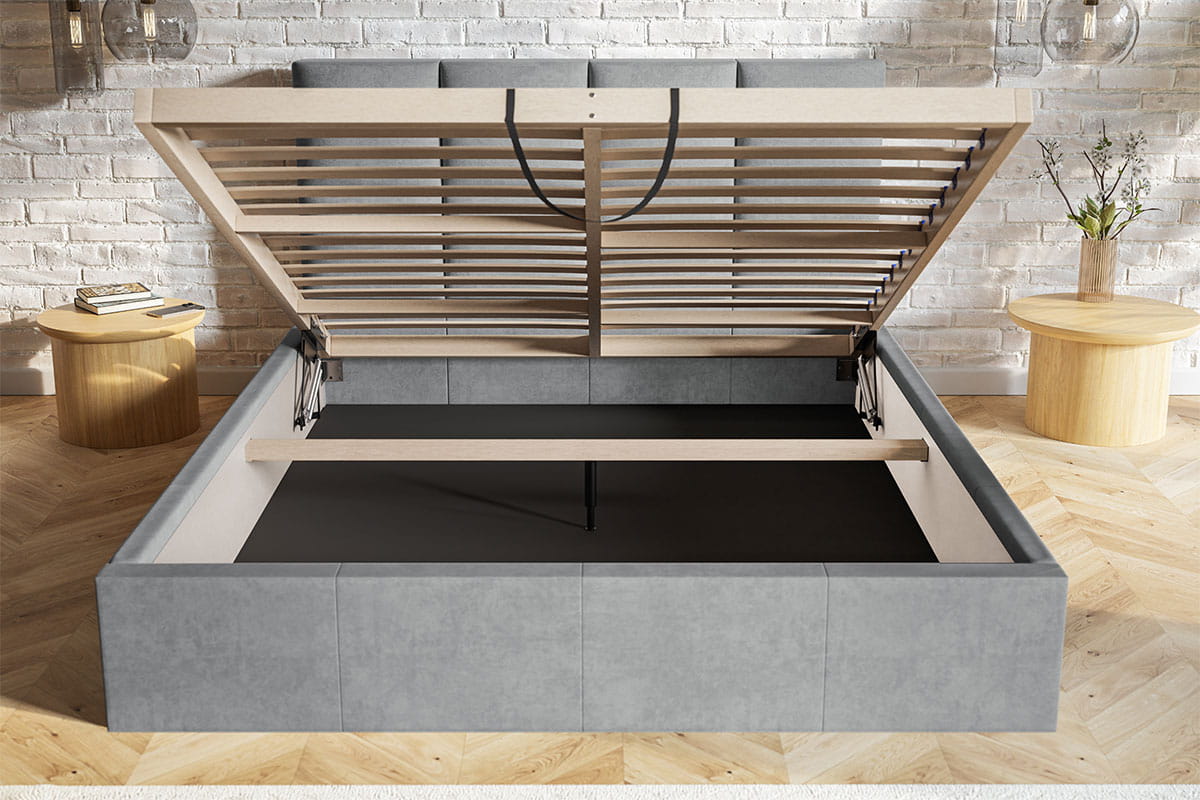 Łóżko tapicerowane 140x200 PORTO SLIM z pojemnikiem i stelażem beżowy welur