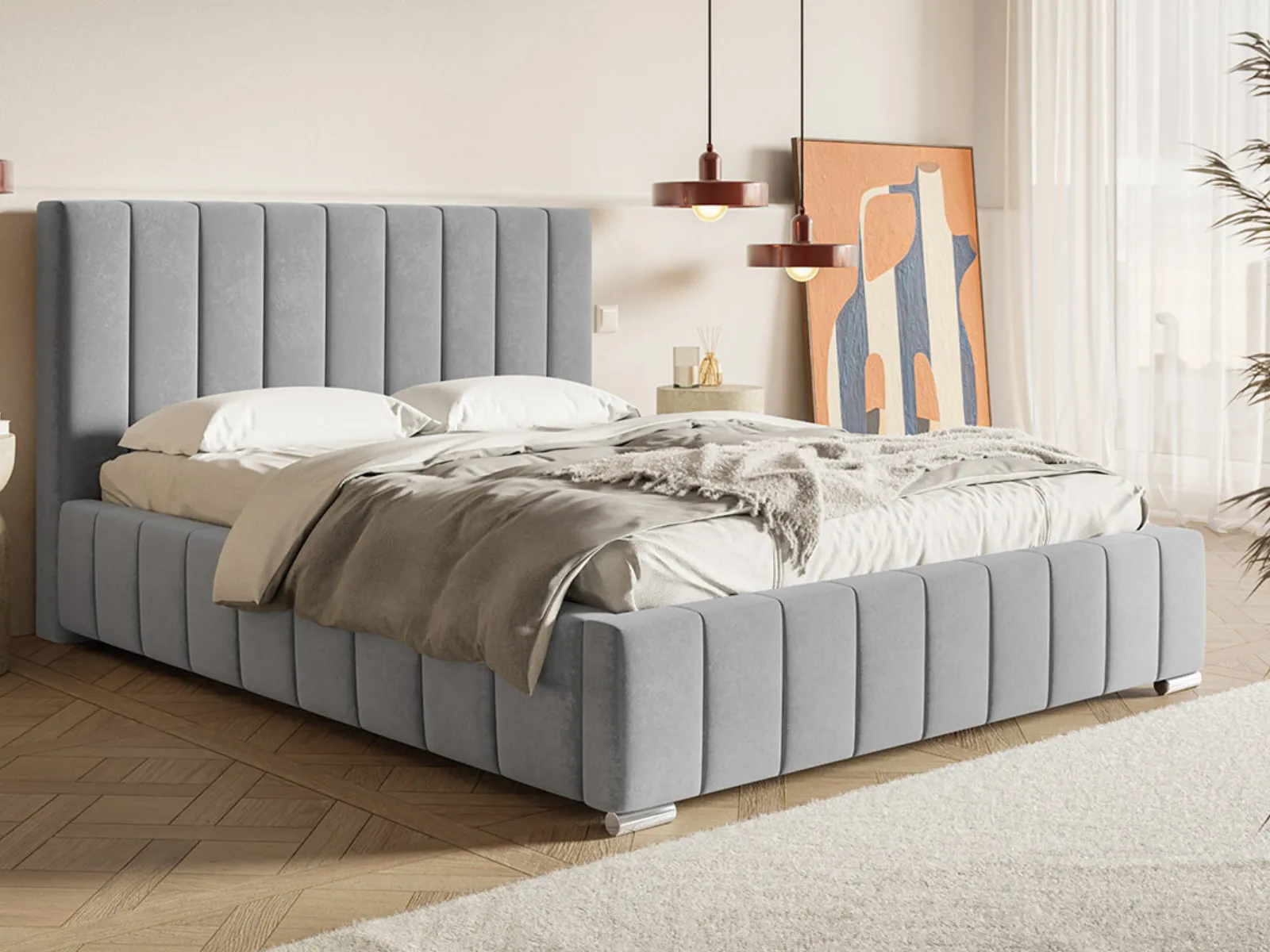 Łóżko tapicerowane 140x200 RAVENNA z pojemnikiem i stelażem szary welur
