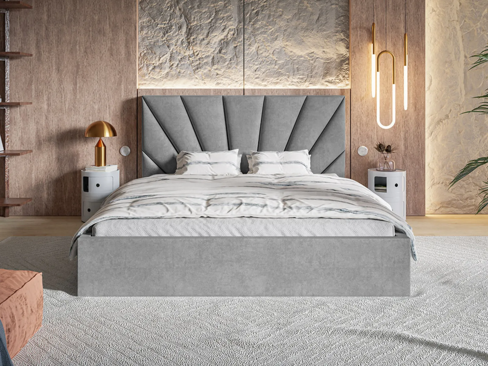Łóżko Regalia Slim to elegancka i funkcjonalna propozycja do nowoczesnej sypialni, która łączy w sobie wyjątkowy design, komfort użytkowania i praktyczne rozwiązania. Smukła konstrukcja typu SLIM nadaje mu nowoczesny charakter, a efektowny zagłówek z geometrycznym przeszyciem staje się stylowym akcentem we wnętrzu.