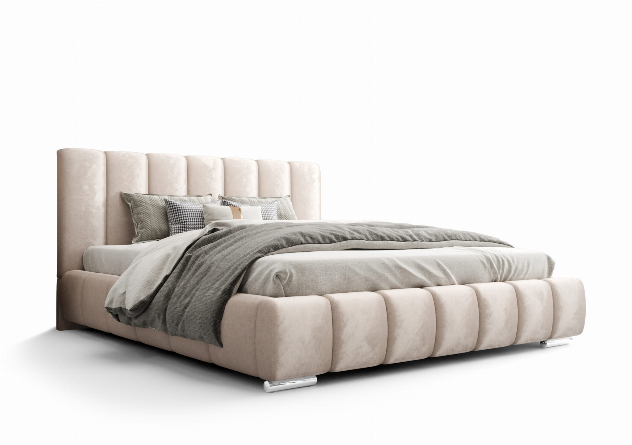 Łóżko tapicerowane 140x200 RUBEL z pojemnikiem i stelażem beżowy welur