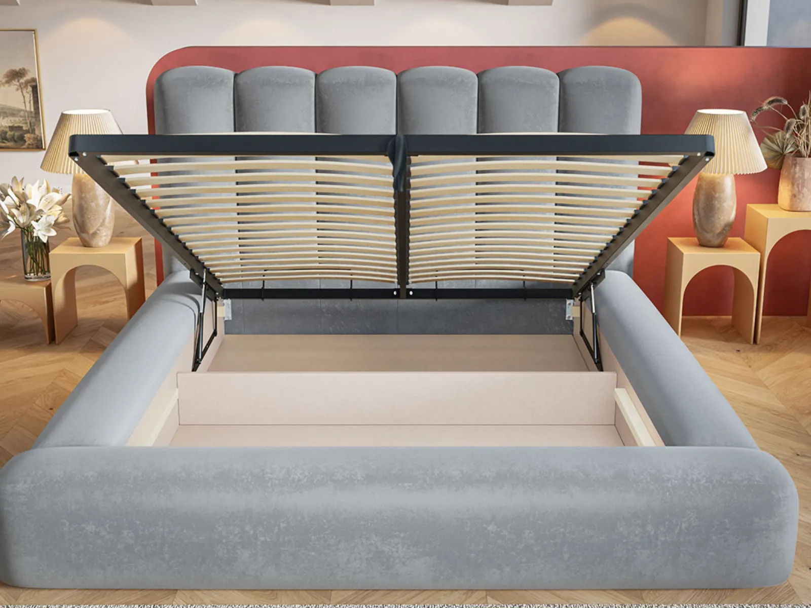 Łóżko tapicerowane 140x200 VERANO z pojemnikiem i stelażem szary welur