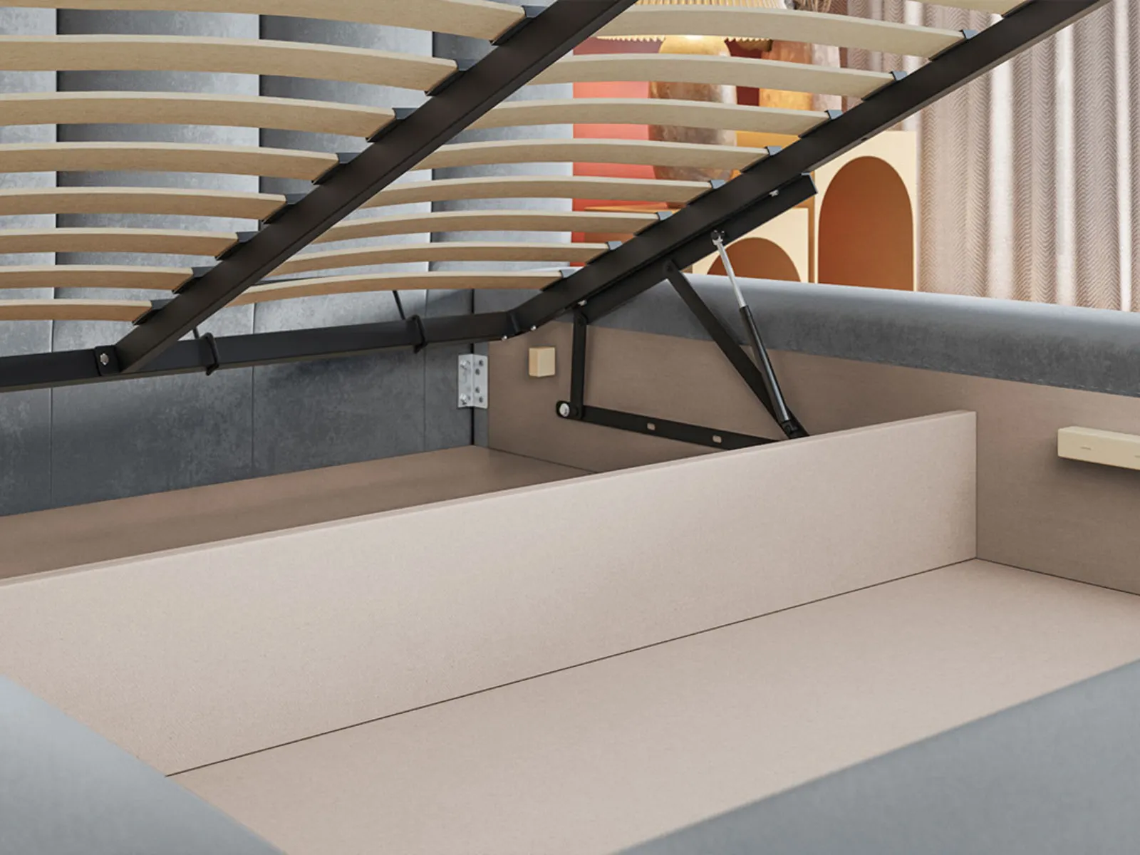 Łóżko tapicerowane 140x200 VERANO szare z pojemnikiem na pościel i stelażem