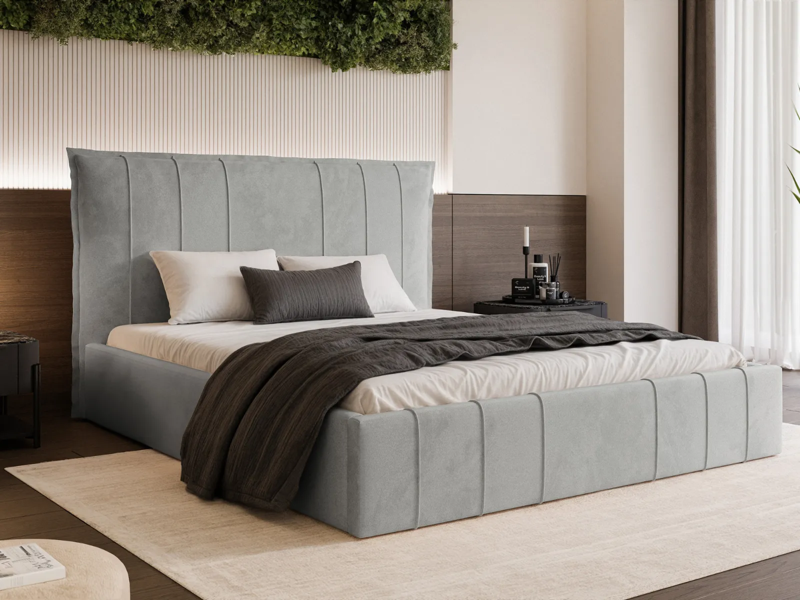 Z łóżkiem tapicerowanym Aurelia stworzysz sypialnię, w której panuje spokój, elegancja i równowaga. Prosty design, miękka tapicerka i perfekcyjne wykończenie sprawiają, że to model ponadczasowy - idealny dla osób, które cenią komfortowy sen i elegancką prostotę.
