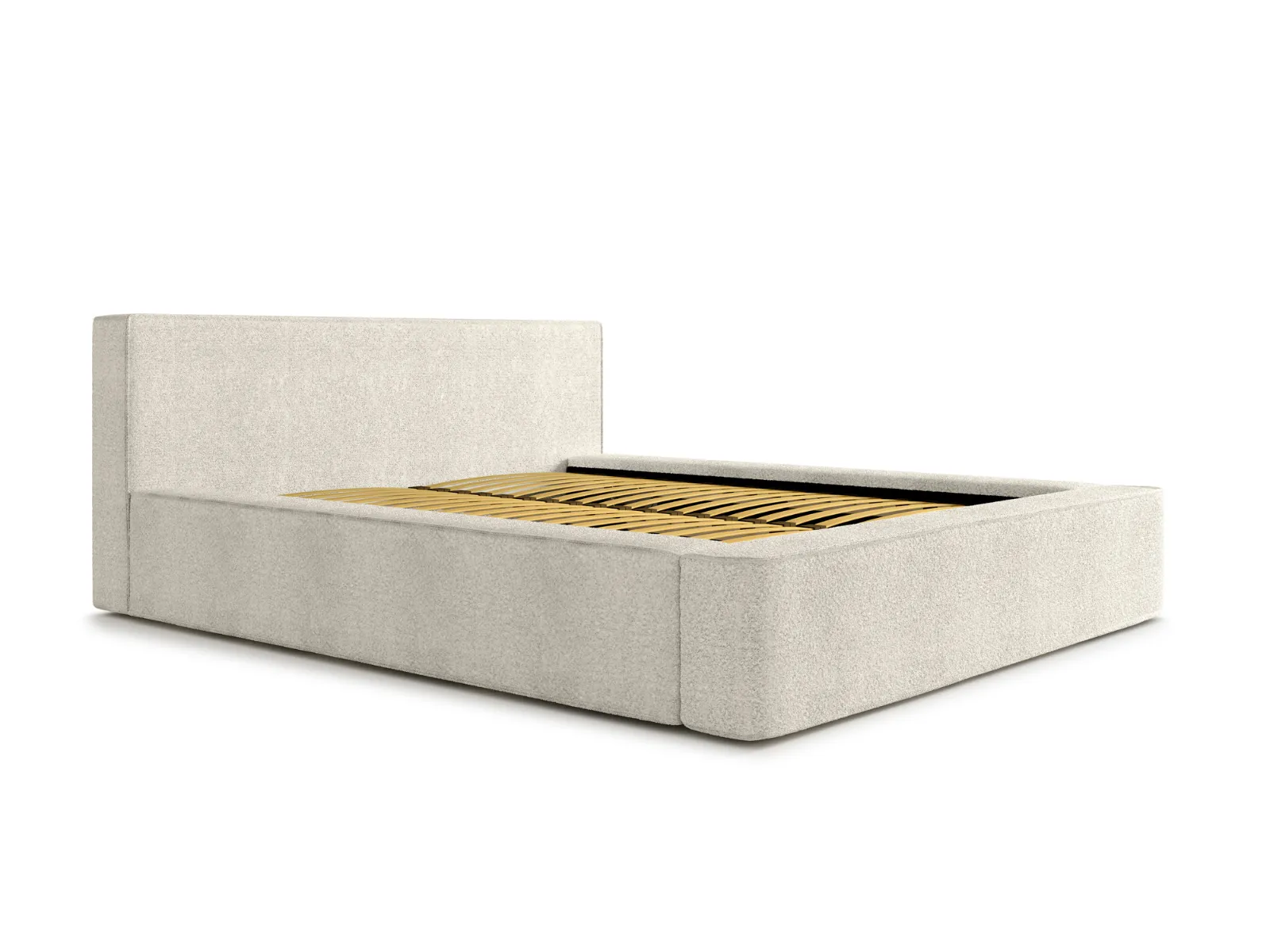 Łóżko tapicerowane 160x200 DAISY z pojemnikiem i stelażem w tkaninie Quelle boucle ecru