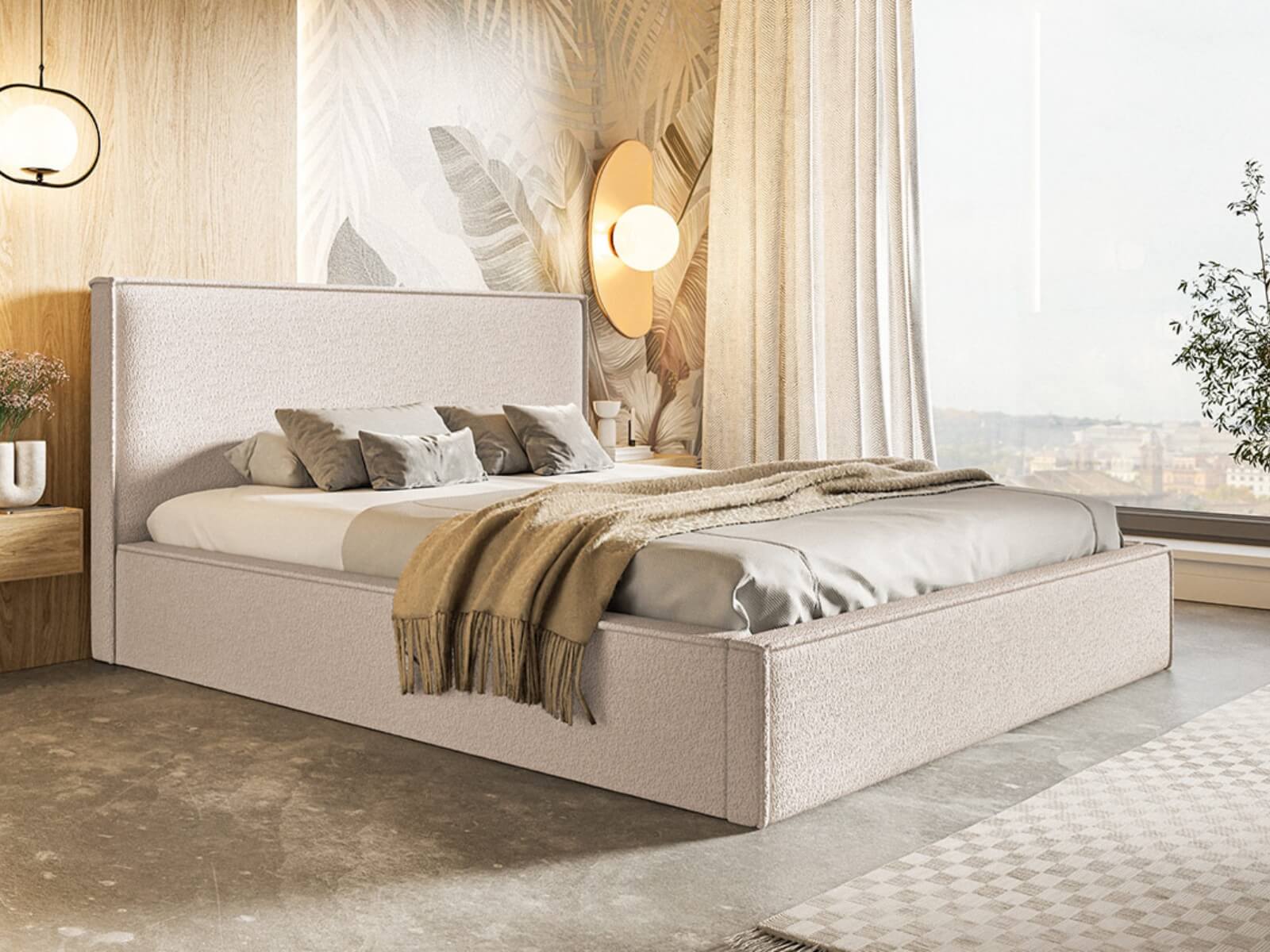 Łóżko tapicerowane 160x200 FLANO SLIM z pojemnikiem i stelażem, beżowy welur