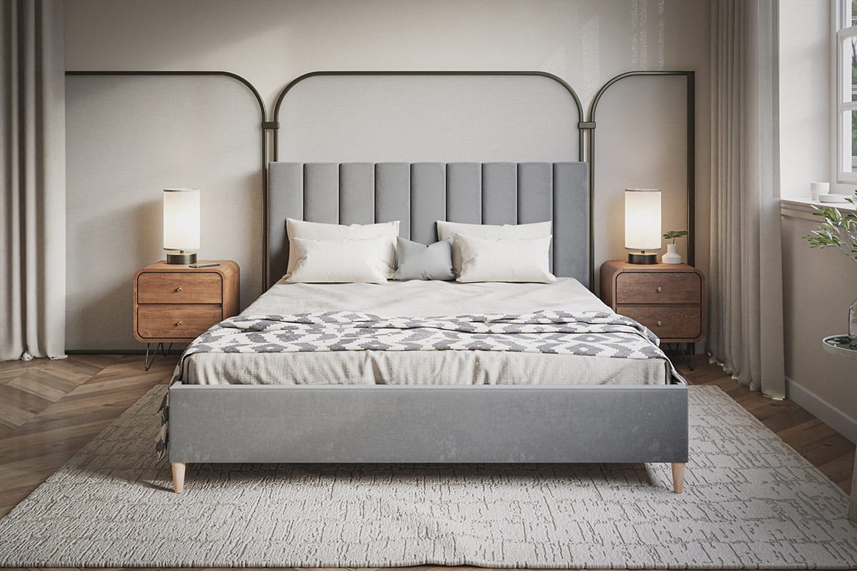Łóżko tapicerowane Janas to idealny wybór do sypialni, która łączy skandynawski styl z nowoczesną elegancją. Wykonane z wysokiej jakości grafitowego weluru, prezentuje się niezwykle stylowo, a miękka tkanina wprowadza do wnętrza przytulność i elegancję. Łóżko Janas osadzone jest na solidnych, drewnianych nogach, które nadają konstrukcji stabilności oraz dodają lekkości typowej dla stylu skandynawskiego.