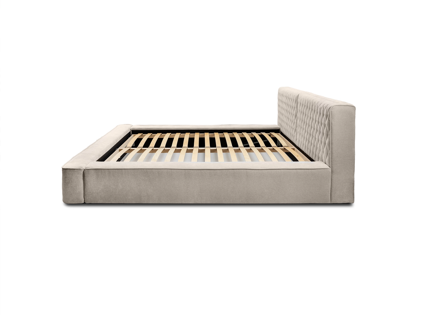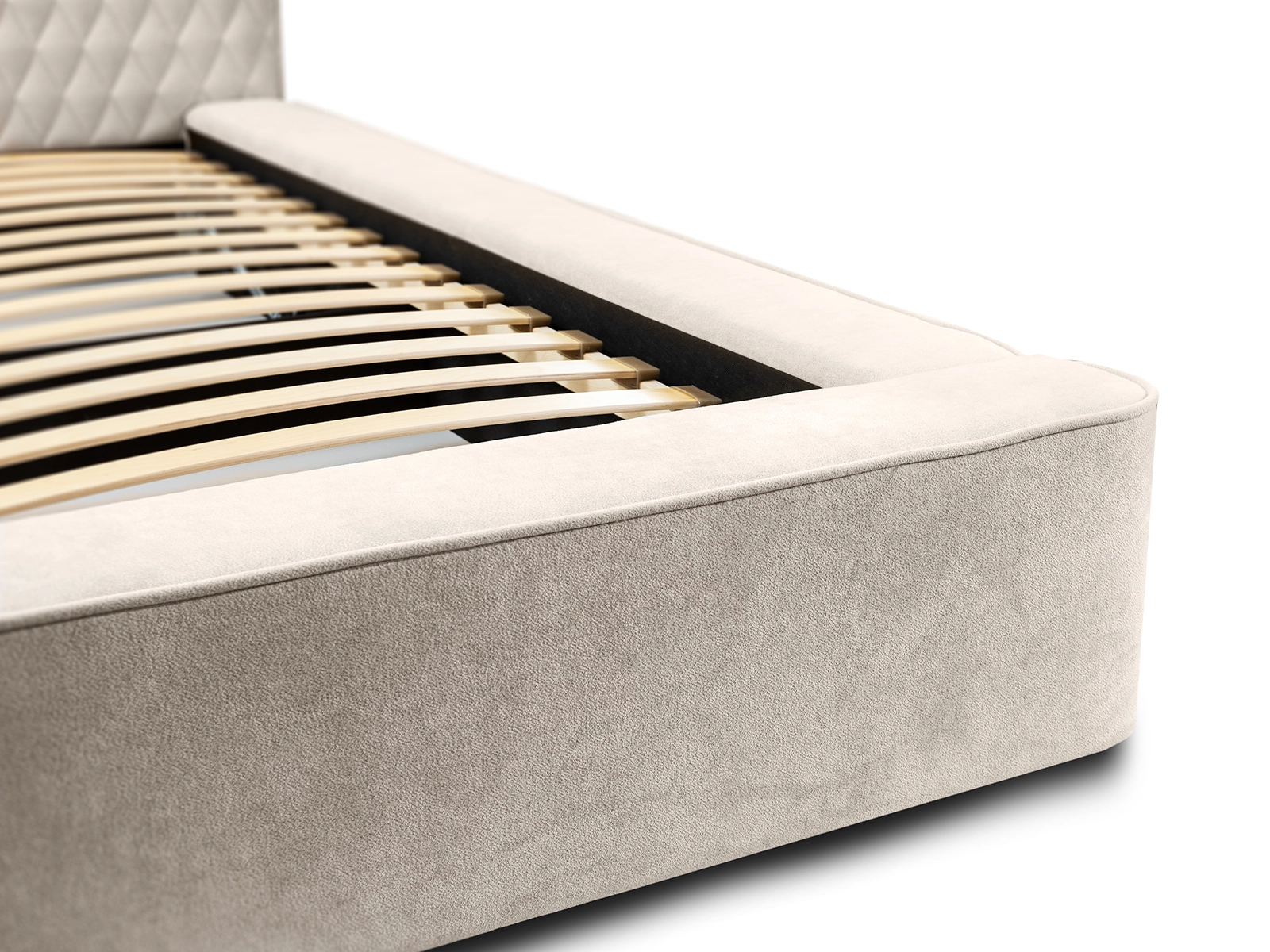 Łóżko wyposażone jest w solidny stelaż, zaprojektowany z dbałością o szczegóły, aby zapewnić optymalne wsparcie i wentylację dla materaca, co przekłada się na wyższy komfort snu i odpoczynku.