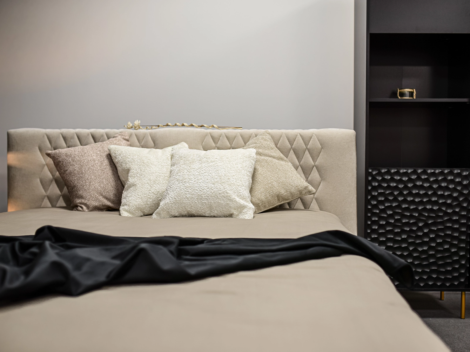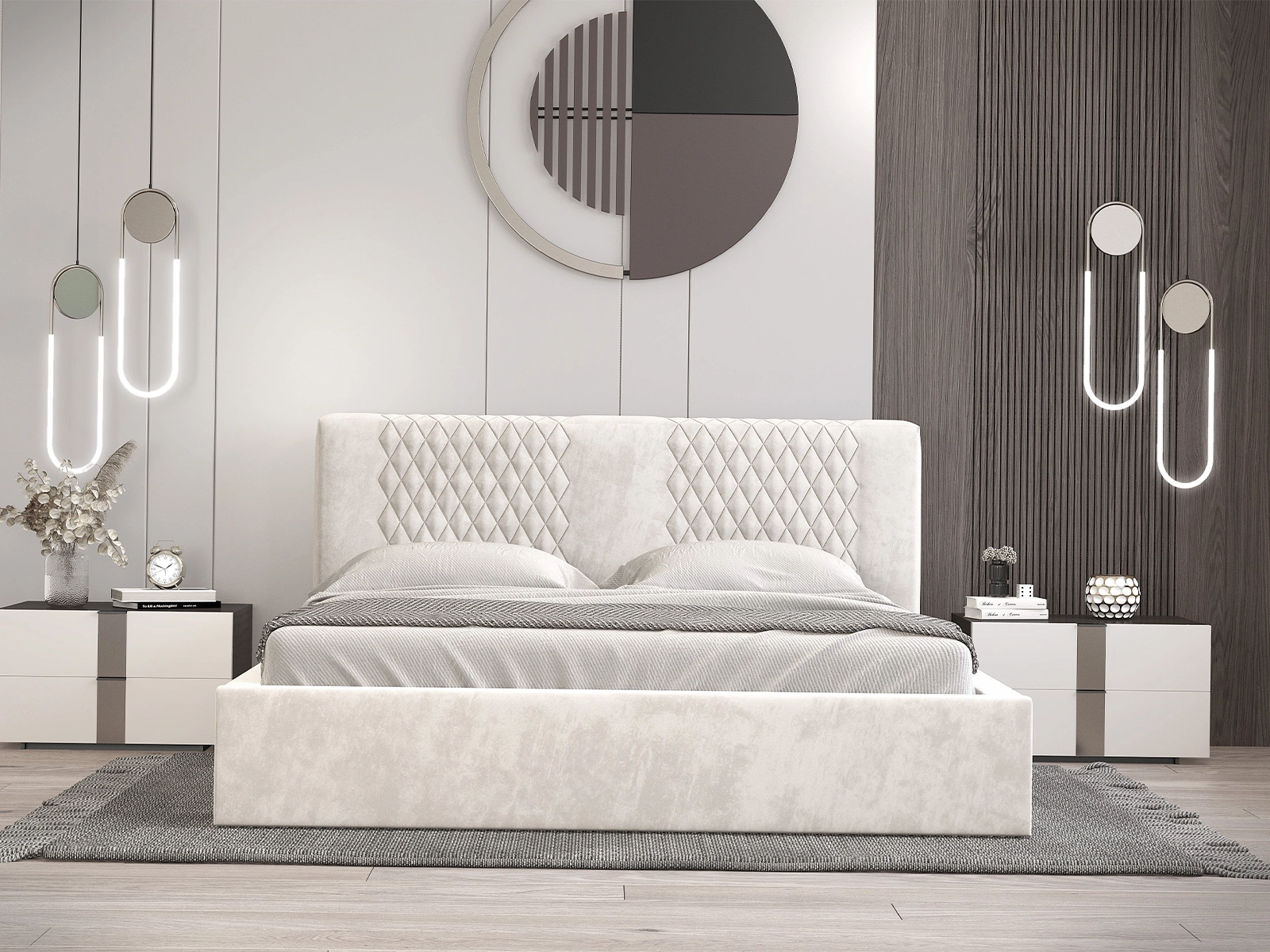 Wzór na zagłówku łóżka Liam charakteryzuje się delikatnymi detalami i precyzyjnym wykonaniem, które nadają sypialni wyjątkowego charakteru. Zagłówek nie tylko pięknie się prezentuje, ale również zapewnia wygodę podczas czytania książki czy oglądania telewizji w łóżku.