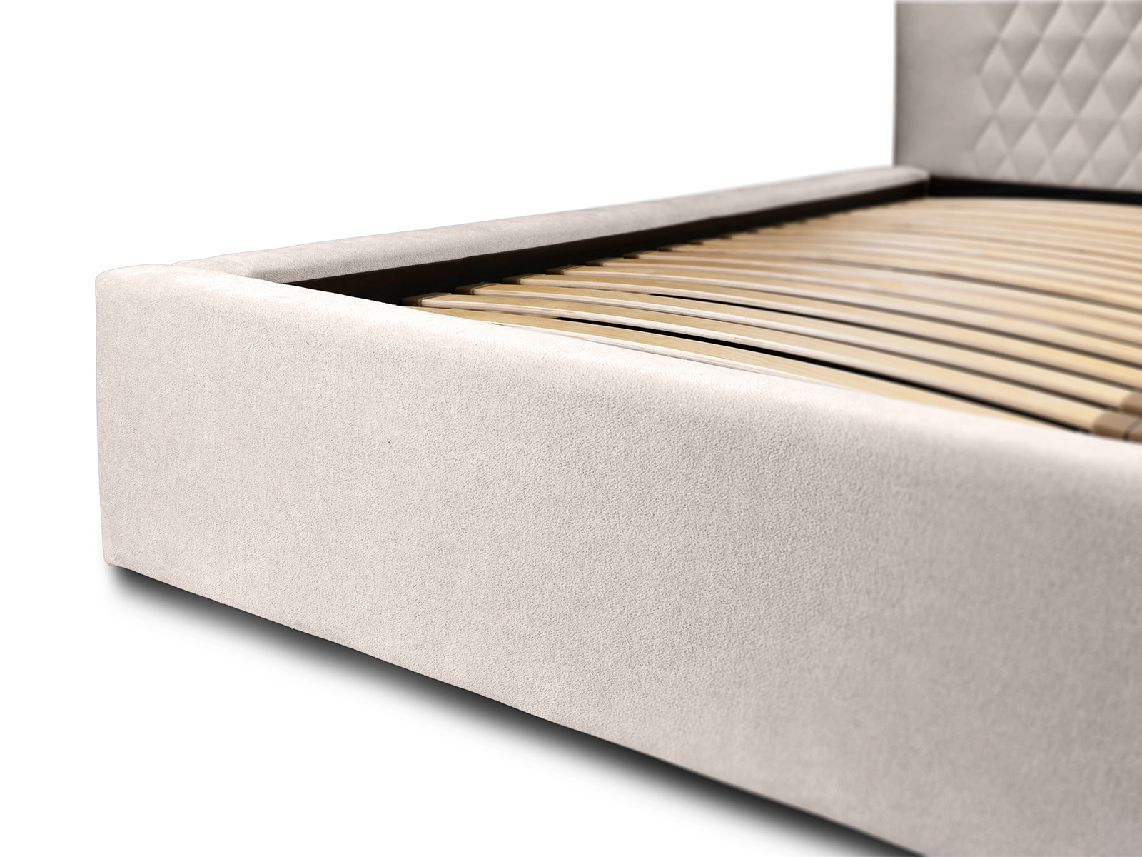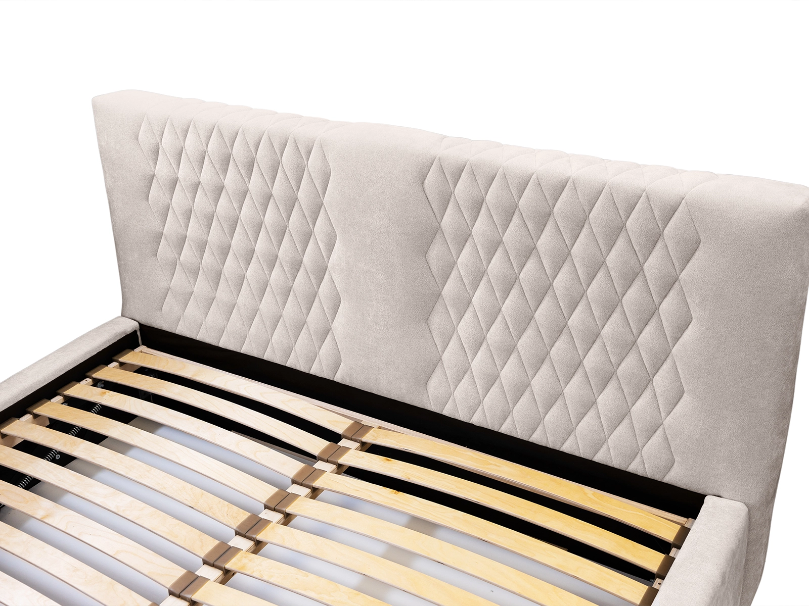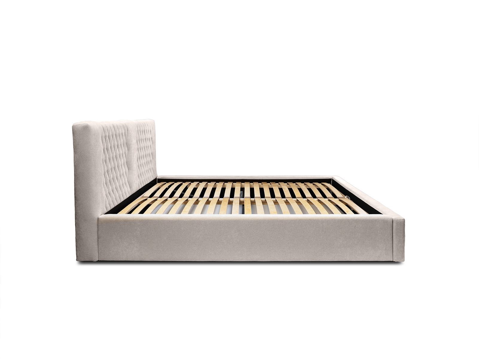 Łóżko wyposażone jest w wytrzymały stelaż, zaprojektowany z dbałością o szczegóły, aby zapewnić optymalne wsparcie i wentylację dla materaca, co przekłada się na wyższy komfort snu i regeneracji.
