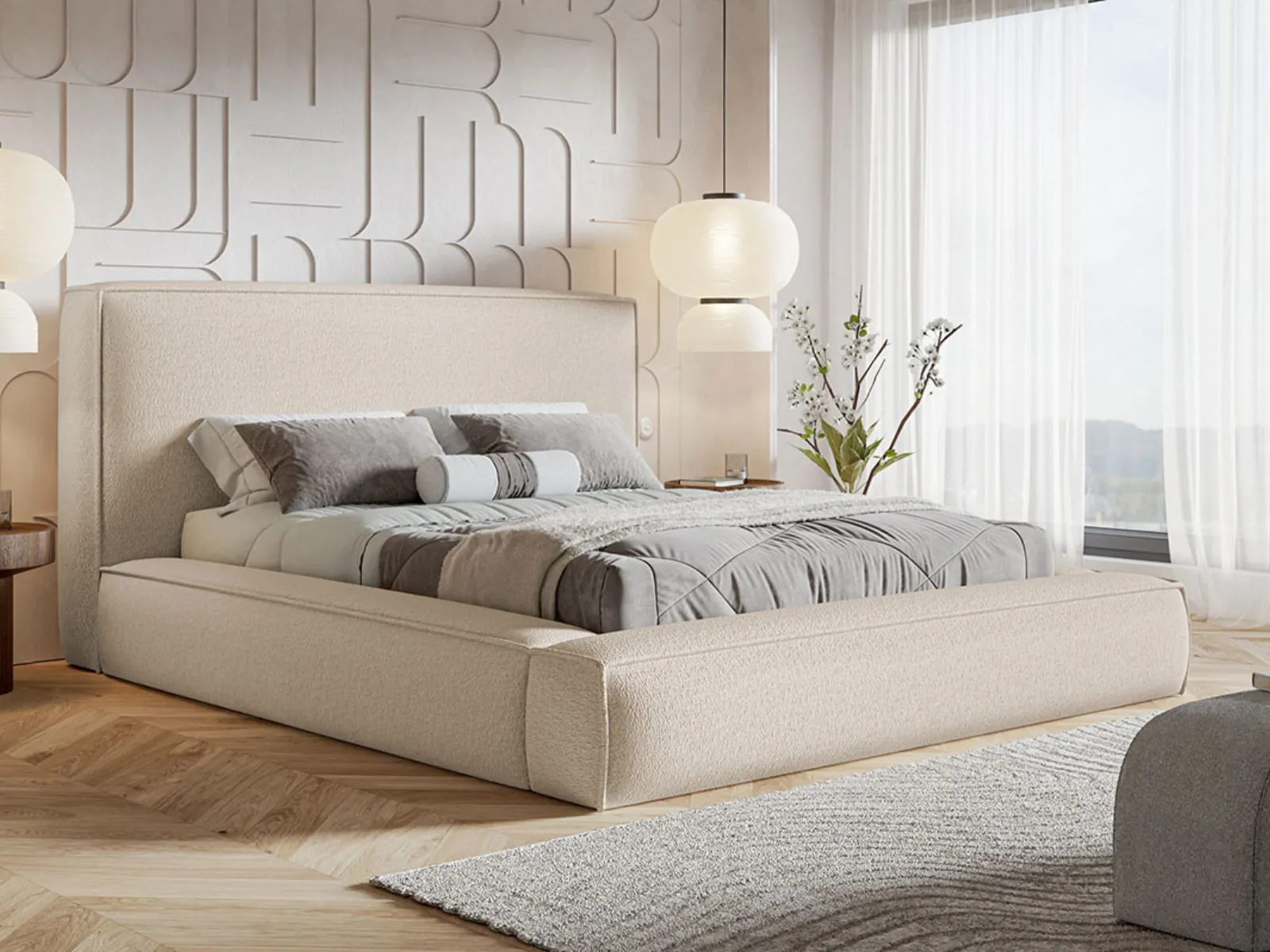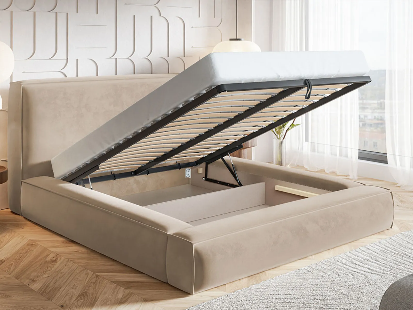 Łóżko tapicerowane 160x200 LOFT beżowe z pojemnikiem na pościel i stelażem