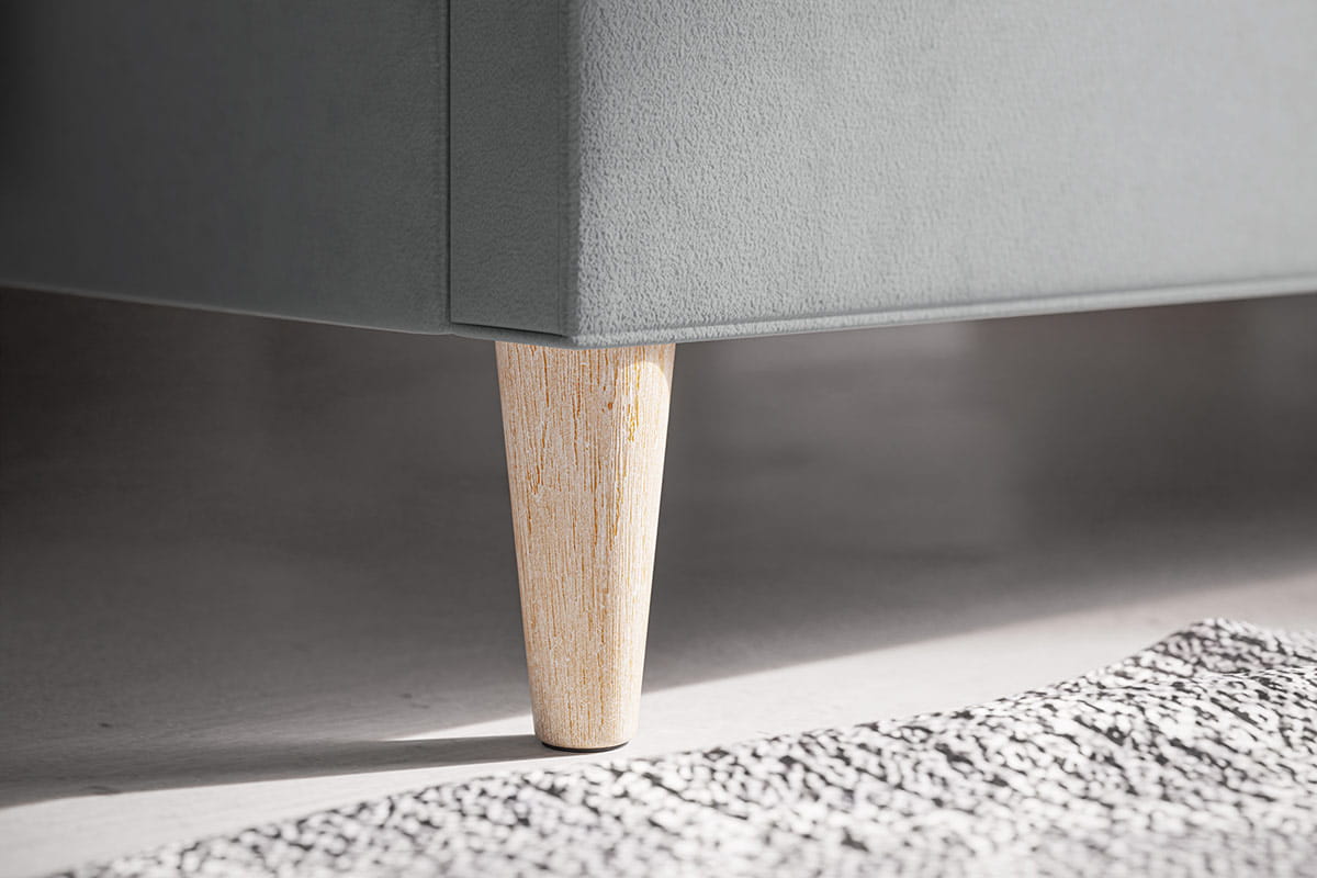 Łóżko tapicerowane Mela to idealne rozwiązanie dla miłośników skandynawskiego stylu i minimalistycznej elegancji. Wykonane z beżowego weluru, prezentuje się wyjątkowo stylowo, wprowadzając do sypialni przytulny i nowoczesny charakter. Stabilne, drewniane nogi w naturalnym kolorze dodają mu lekkości i doskonale współgrają z estetyką nordyckiego designu.