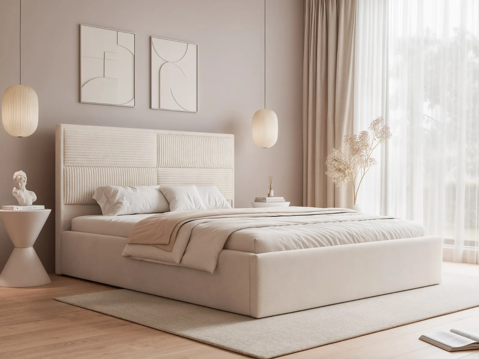 Zmiana tkaniny to standard – oferujemy szeroki wybór materiałów: miękkie welury, tkaniny hydrofobowe, łatwoczyszczące oraz strukturalne boucle. Dzięki temu możesz stworzyć łóżko idealnie dopasowane do Twojej sypialni – niezależnie od tego, czy preferujesz styl nowoczesny, boho czy modern classic.