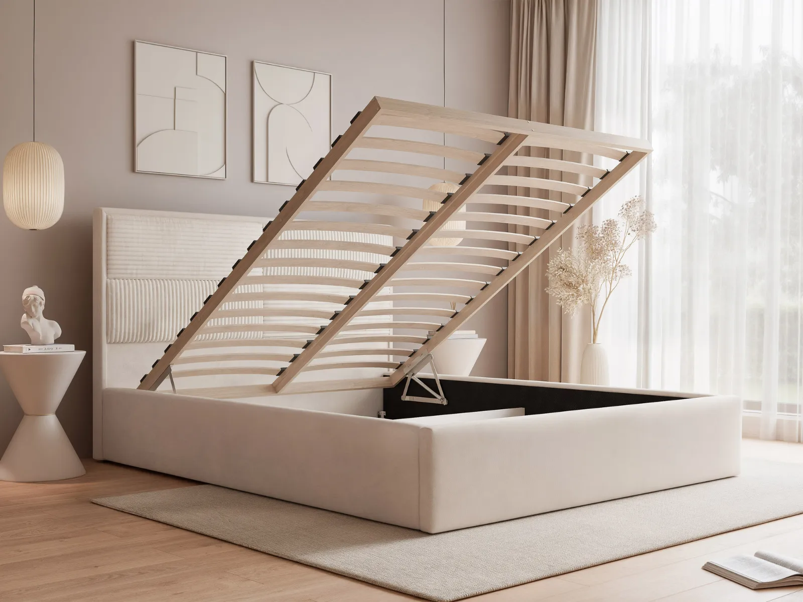 Łóżko tapicerowane 160x200 MIA z pojemnikiem i stelażem, beżowy welur