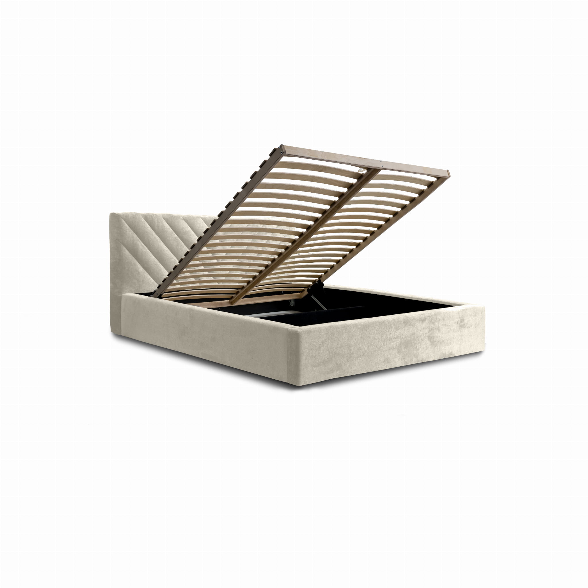 Łóżko tapicerowane 160x200 MOLI III z pojemnikiem i stelażem, jasnobeżowy szenil