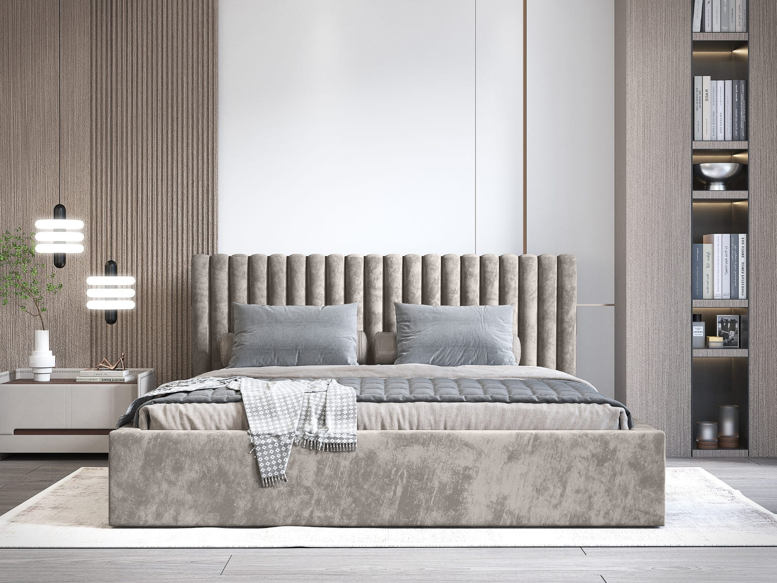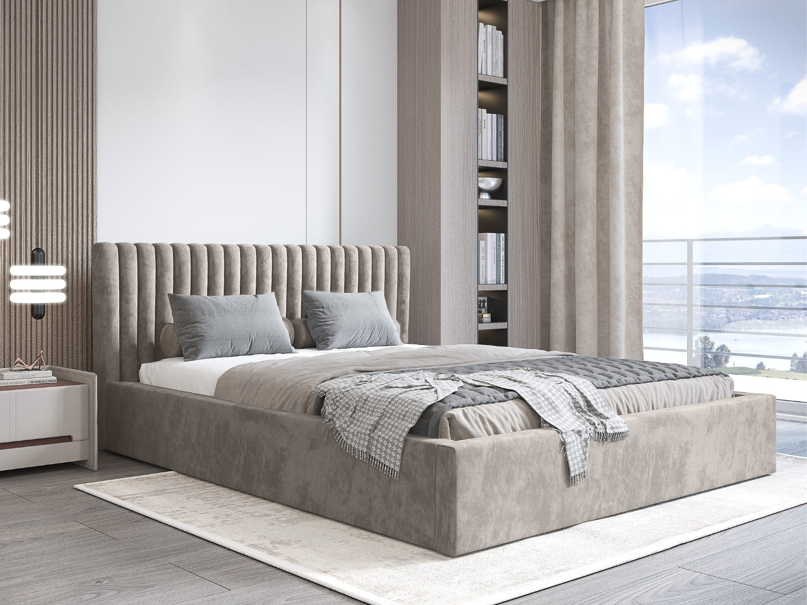Łóżko tapicerowane Moli to doskonały wybór dla osób poszukujących nowoczesnych i stylowych mebli do sypialni. Ten model wyróżnia się designerskim zagłówkiem o geometrycznym wzorze, który nadaje wnętrzu luksusowego charakteru. Dzięki starannemu wykonaniu i praktycznym rozwiązaniom, łóżko tapicerowane Moli łączy w sobie elegancję, komfort i funkcjonalność.