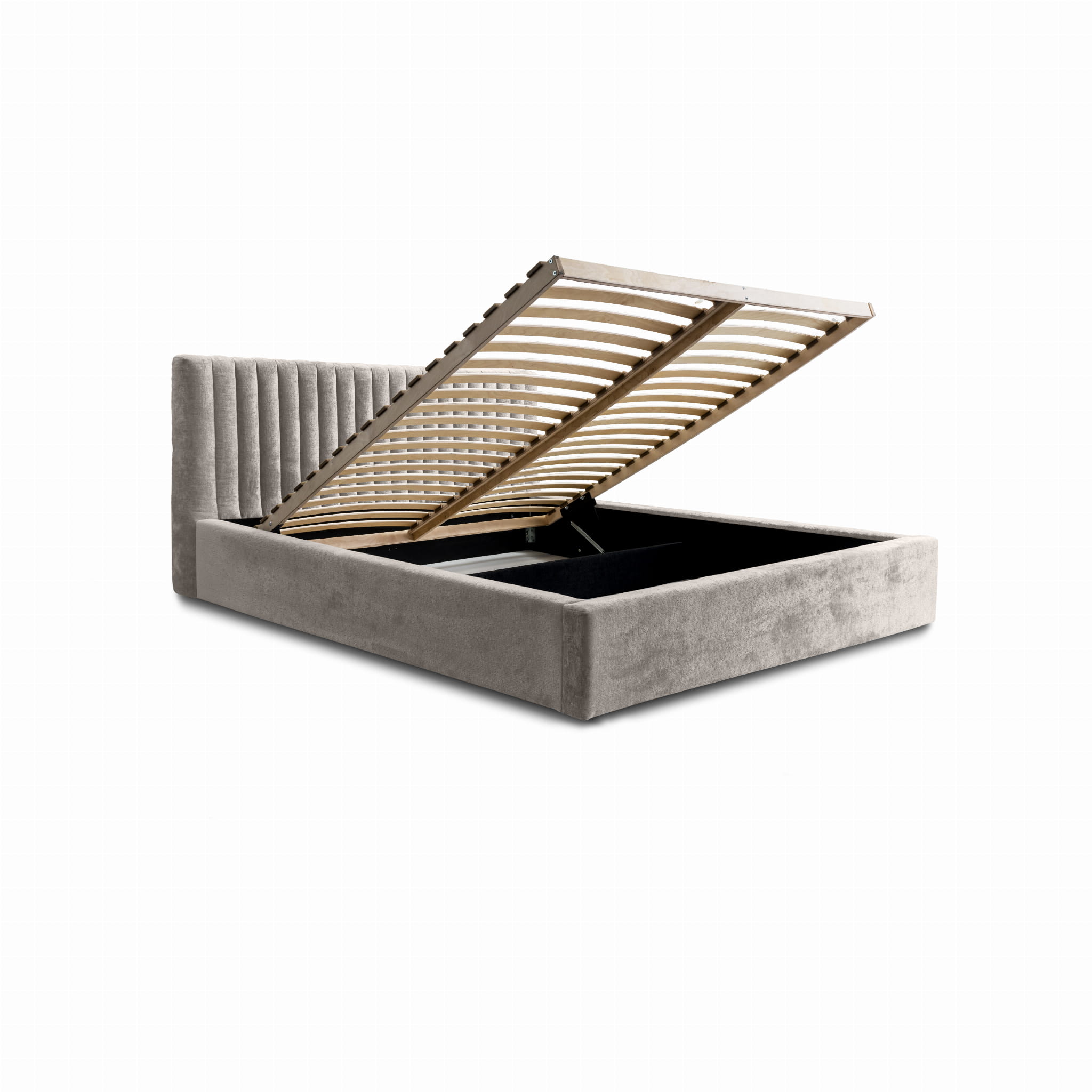 Łóżko tapicerowane 160x200 MOLI z pojemnikiem i stelażem, beżowy szenil