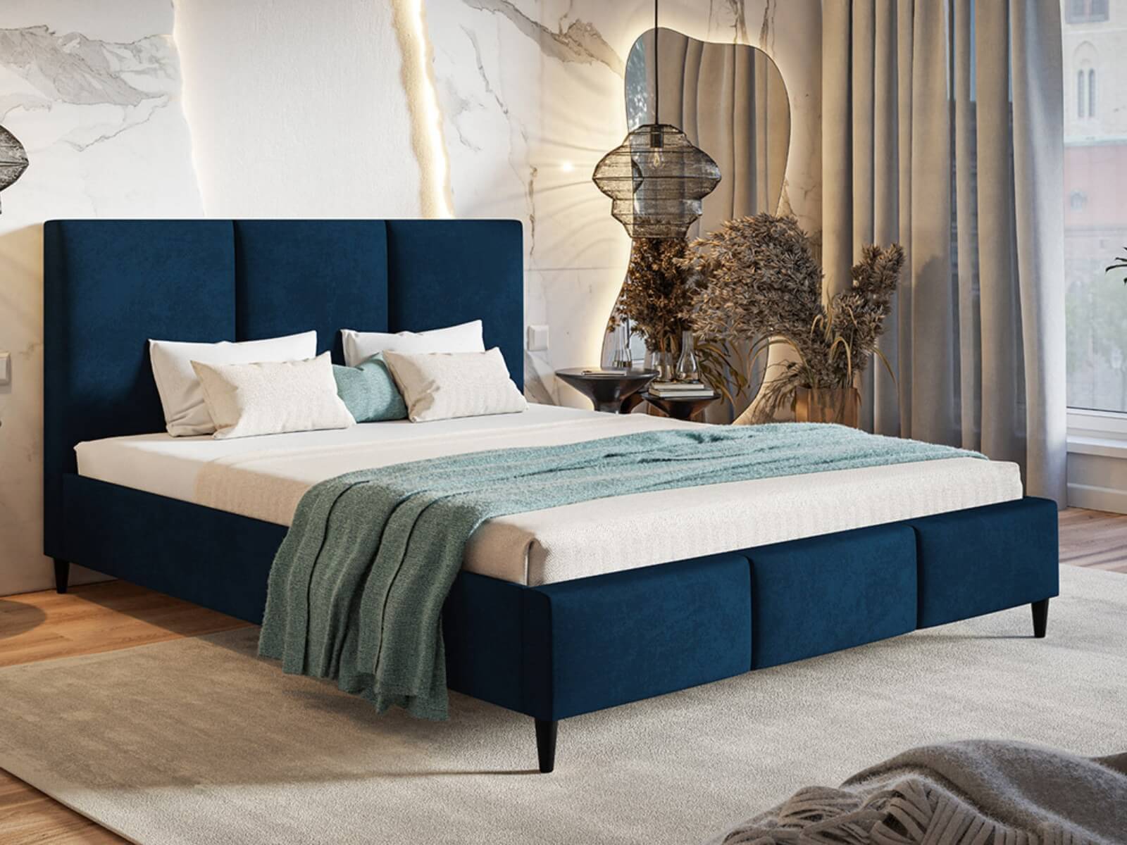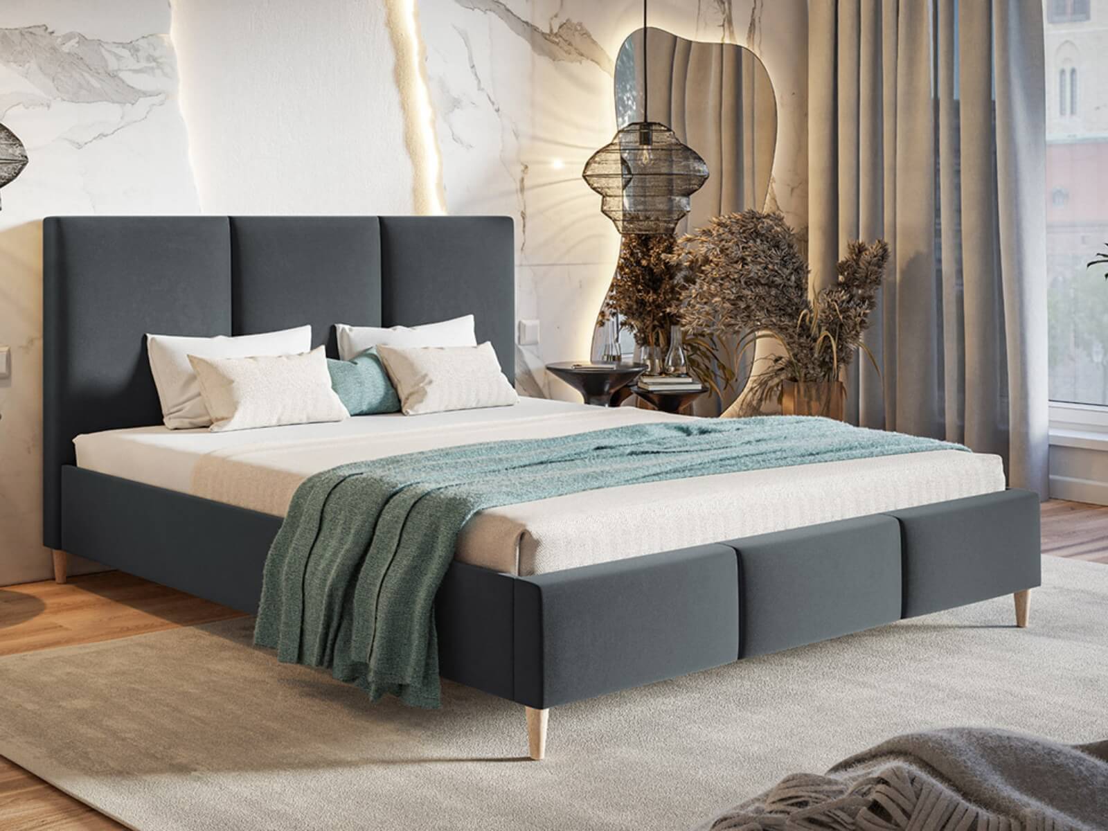 - Wymiary pod materac: 160×200 cm