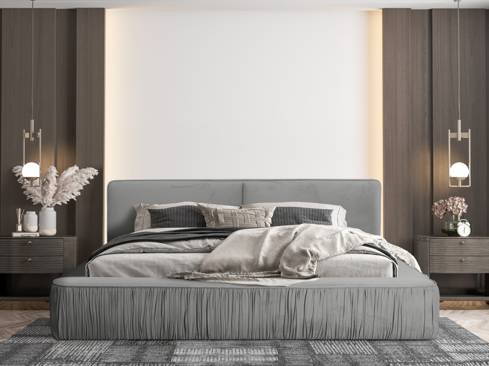 Zapraszamy do odkrycia łóżka tapicerowanego Resin. Jego masywna konstrukcja z imponującymi marszczeniami na ramie łóżka stanowi esencję luksusu i stylu. Każdy szczegół został starannie zaprojektowany, aby stworzyć niepowtarzalny design, który zachwyci Twoje zmysły.