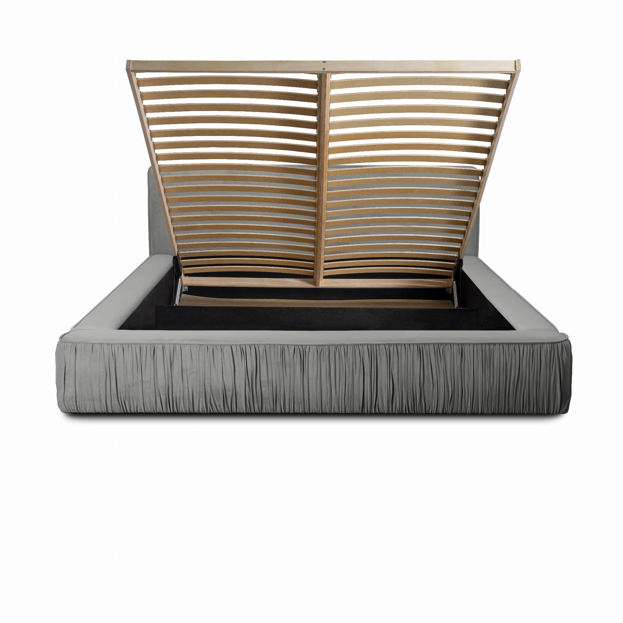 Łóżko tapicerowane 160x200 RESIN z pojemnikiem na pościel i stelażem szary welur