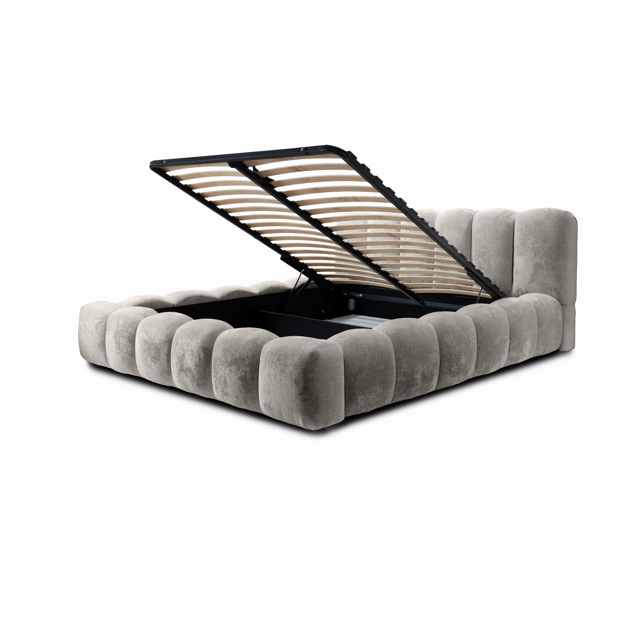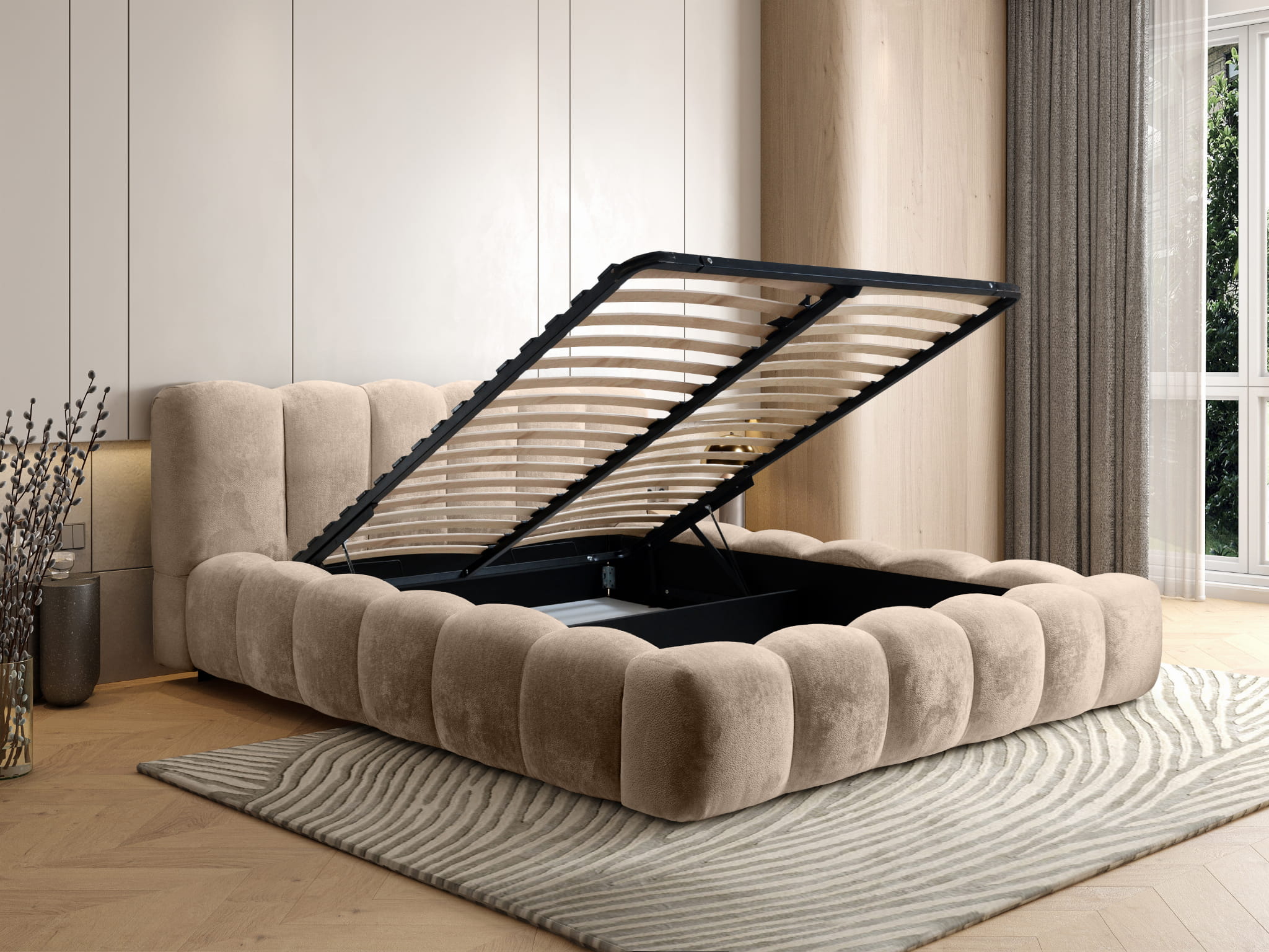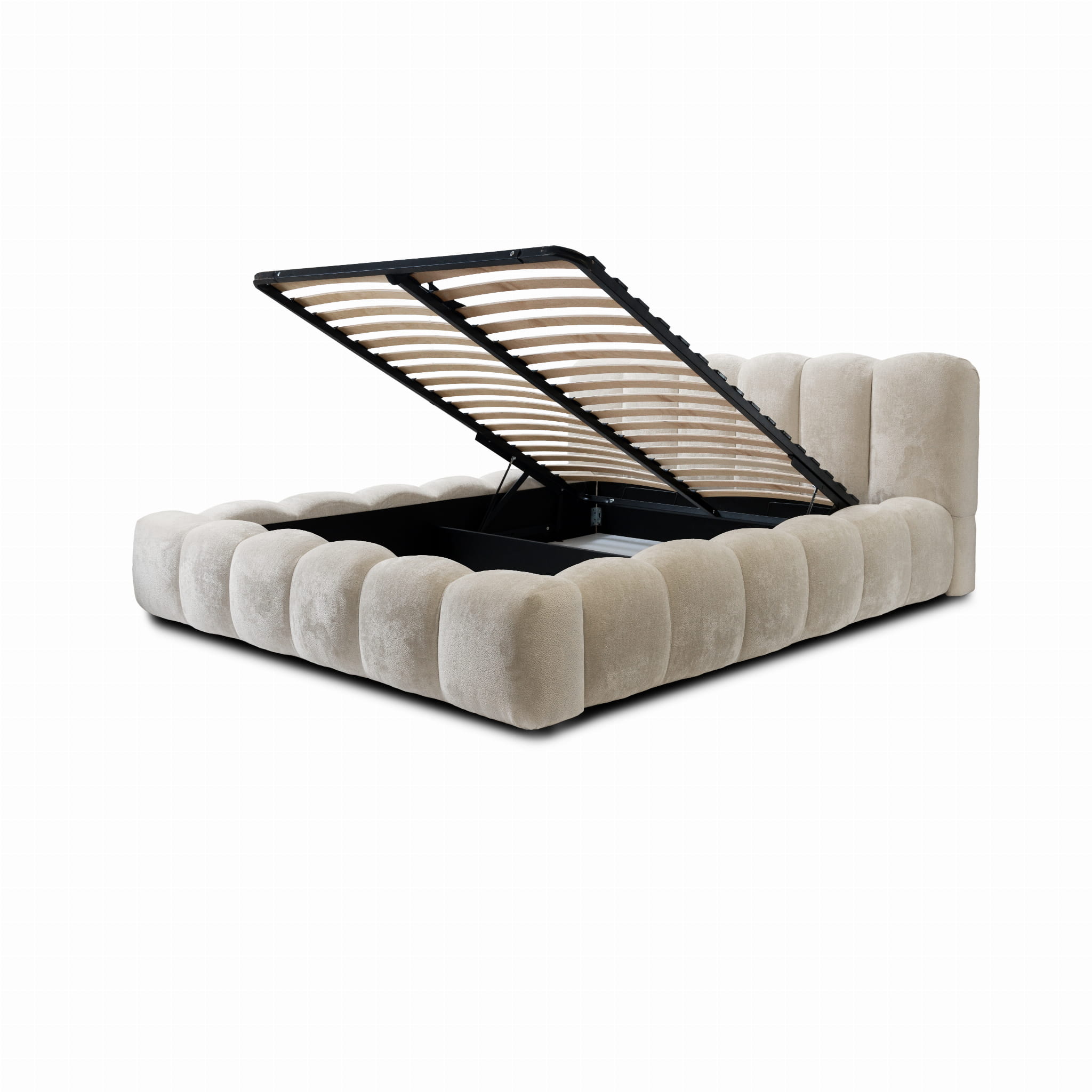 Łóżko tapicerowane 160x200 ROSA beżowa tkanina z pojemnikiem i stelażem