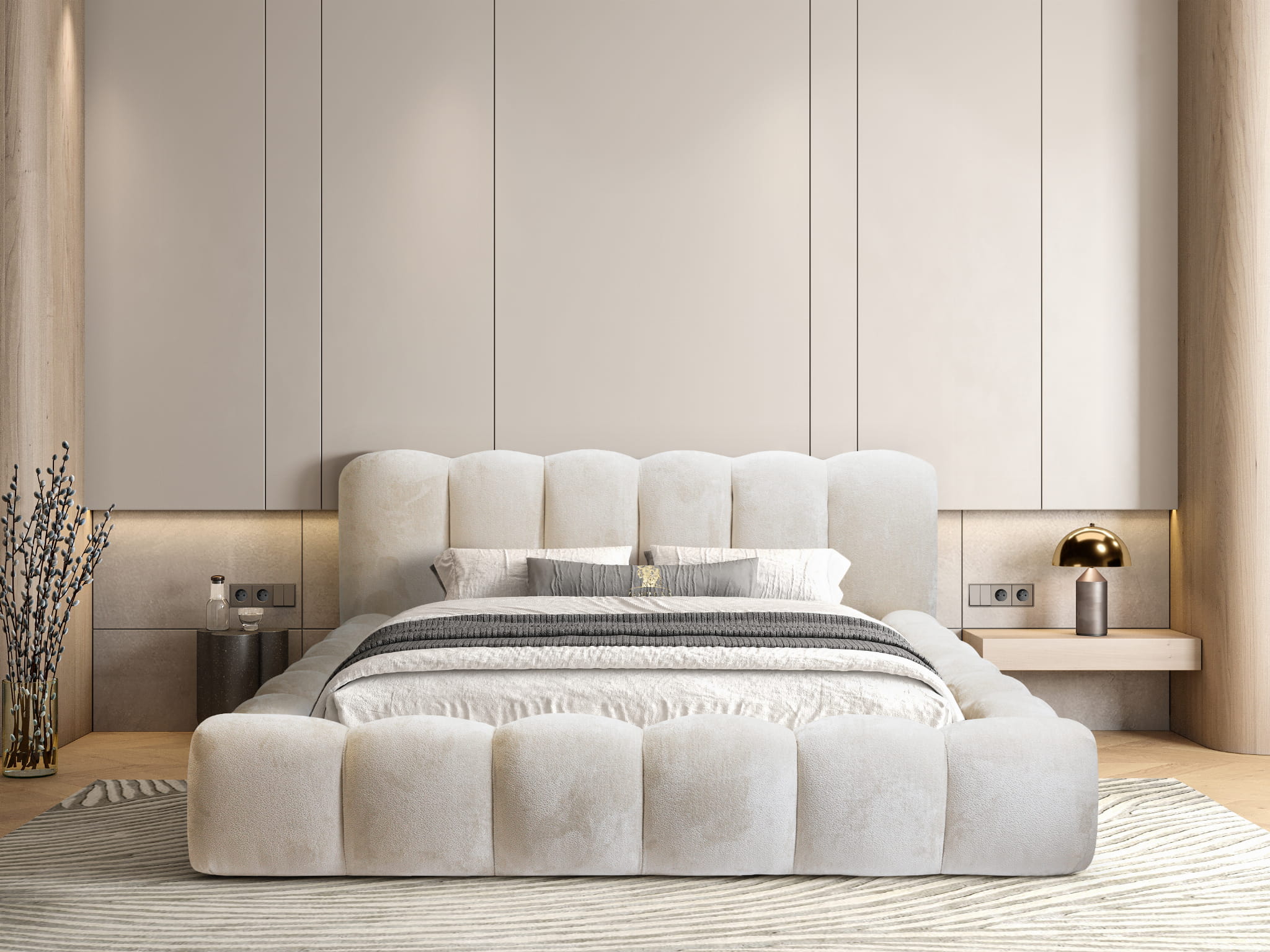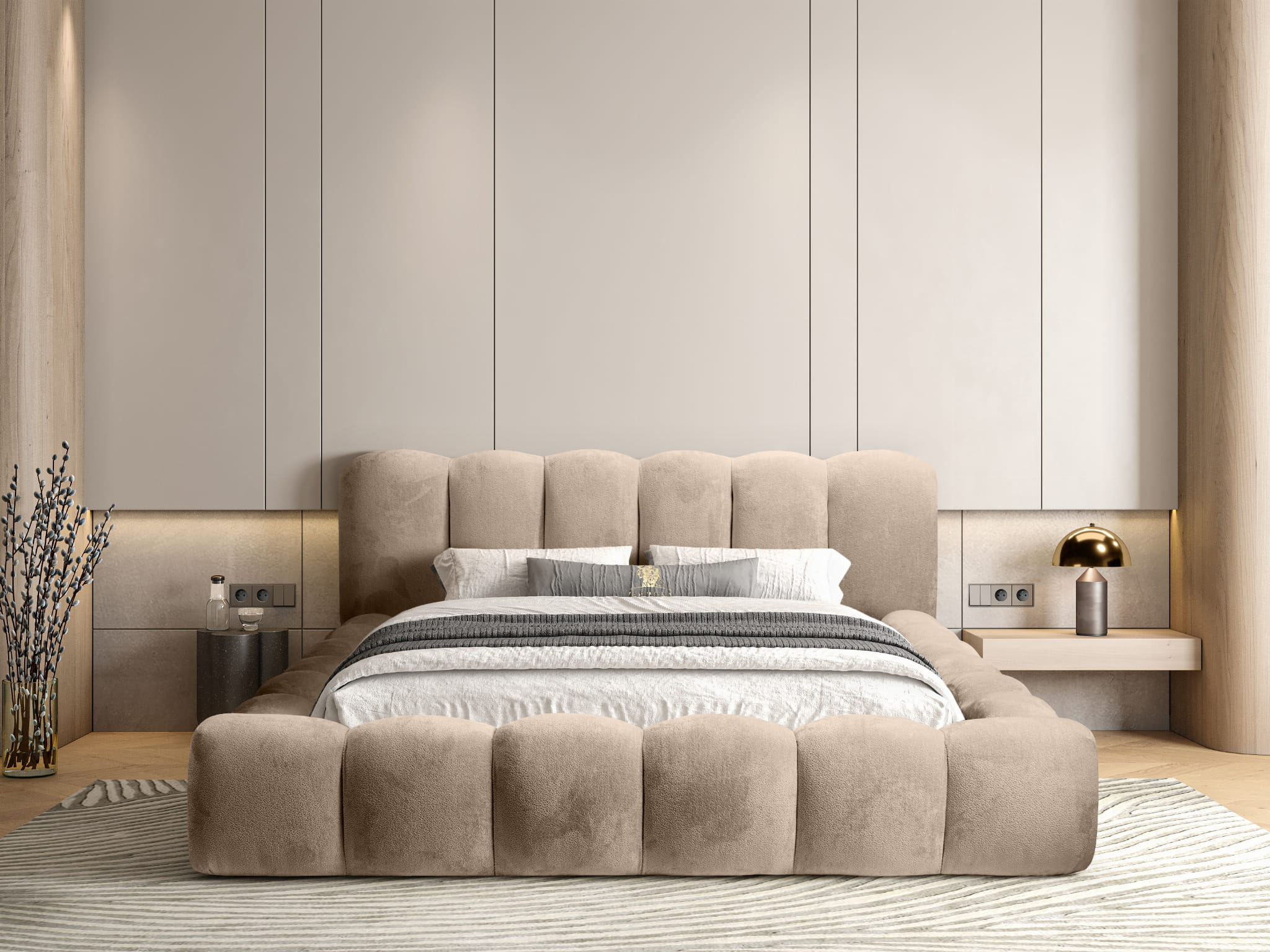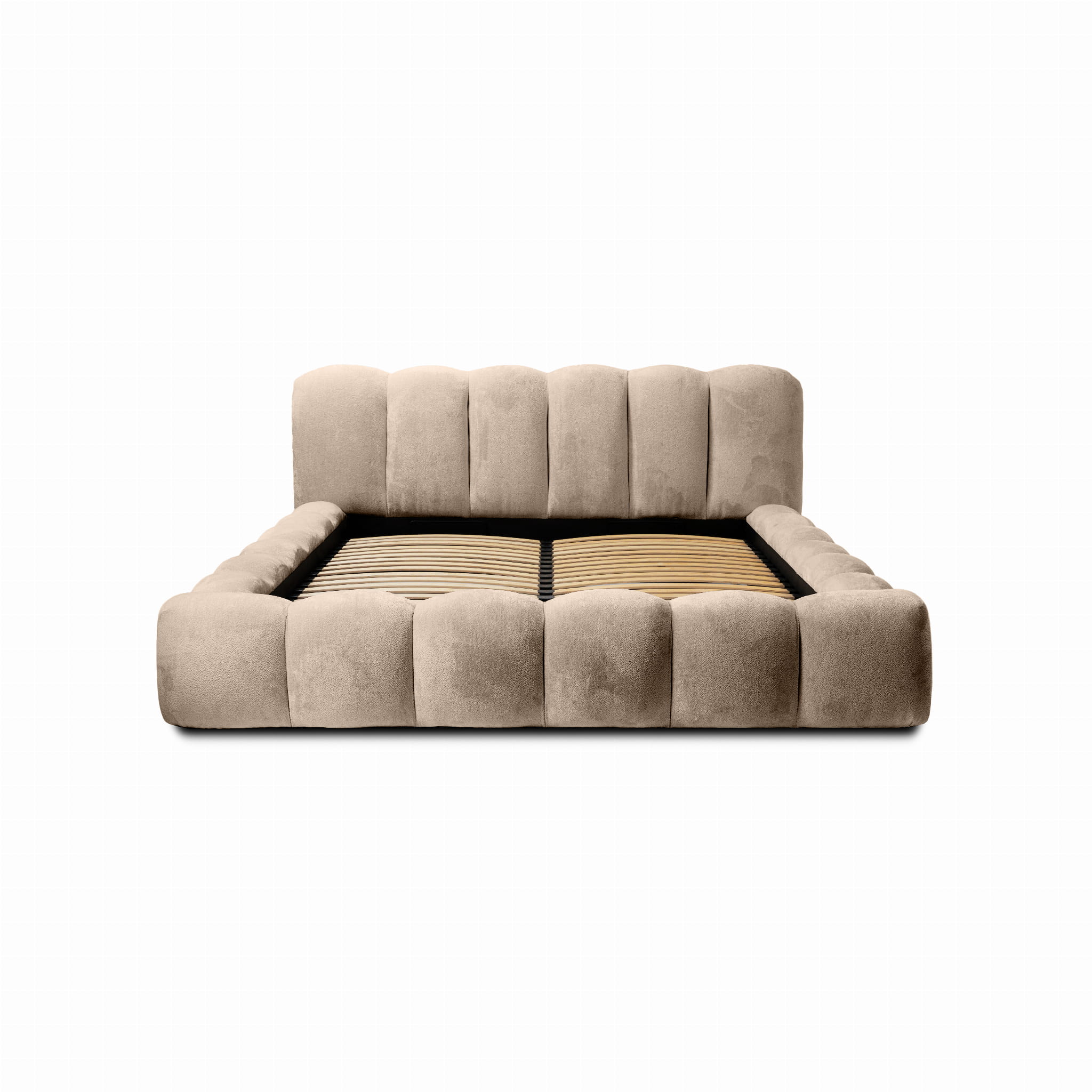 Łóżko tapicerowane 160x200 ROSA beżowa tkanina z pojemnikiem i stelażem