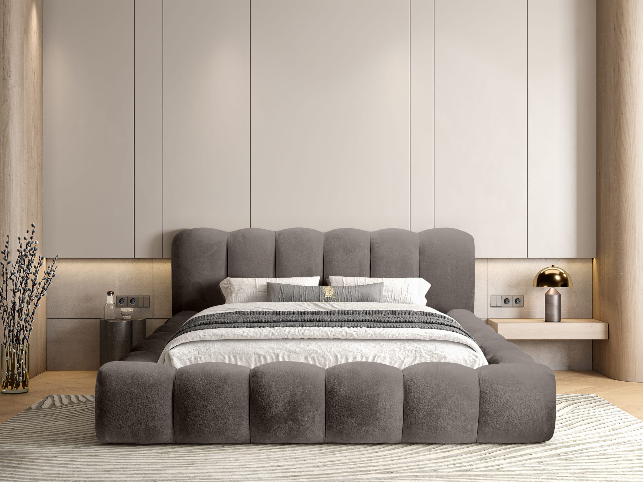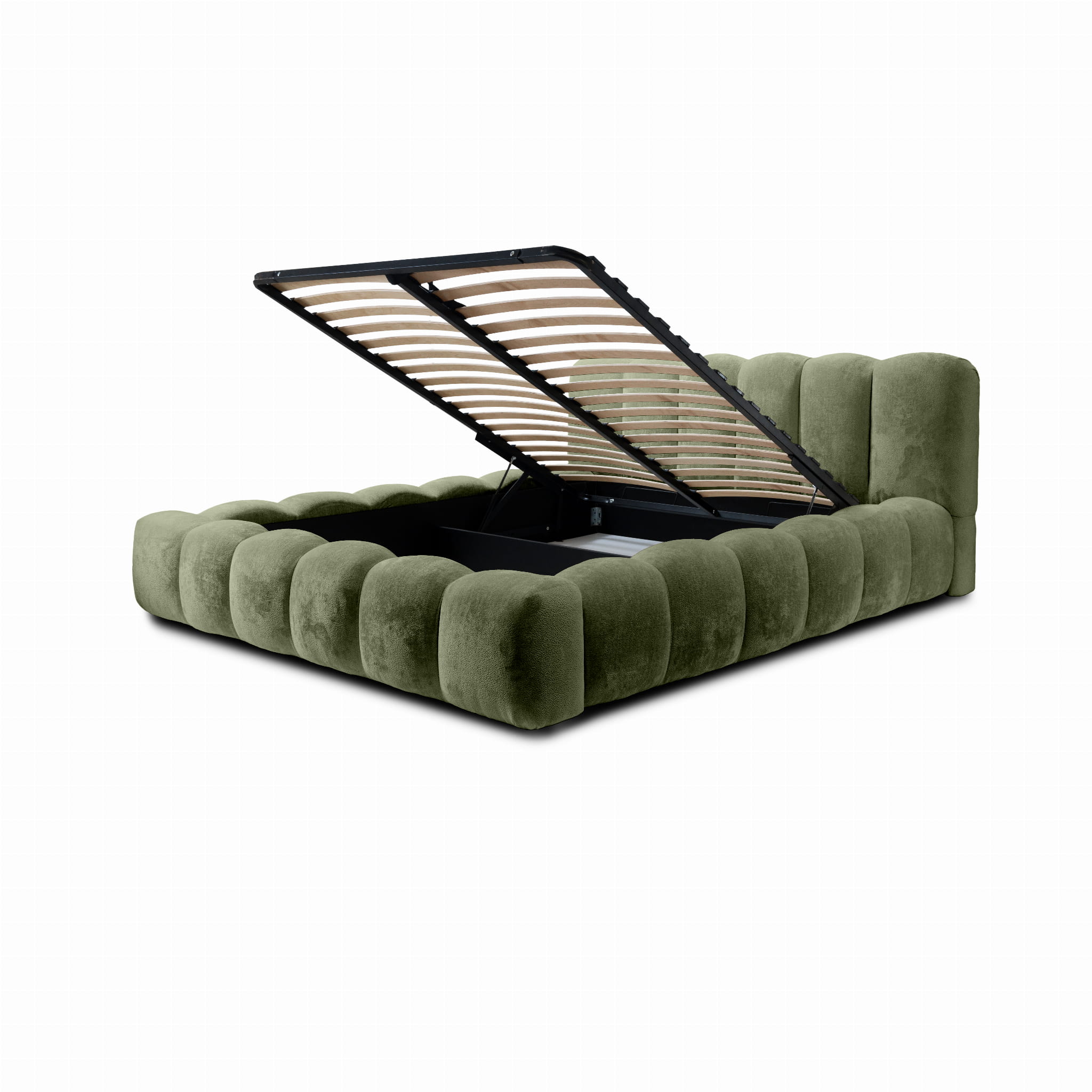 Łóżko tapicerowane 160x200 ROSA ze stelażem i pojemnikiem beżowe szenilowe