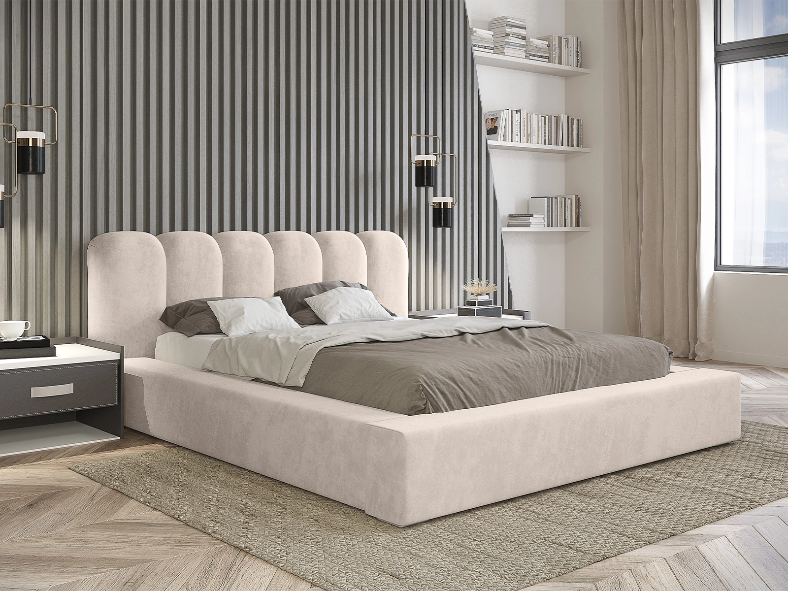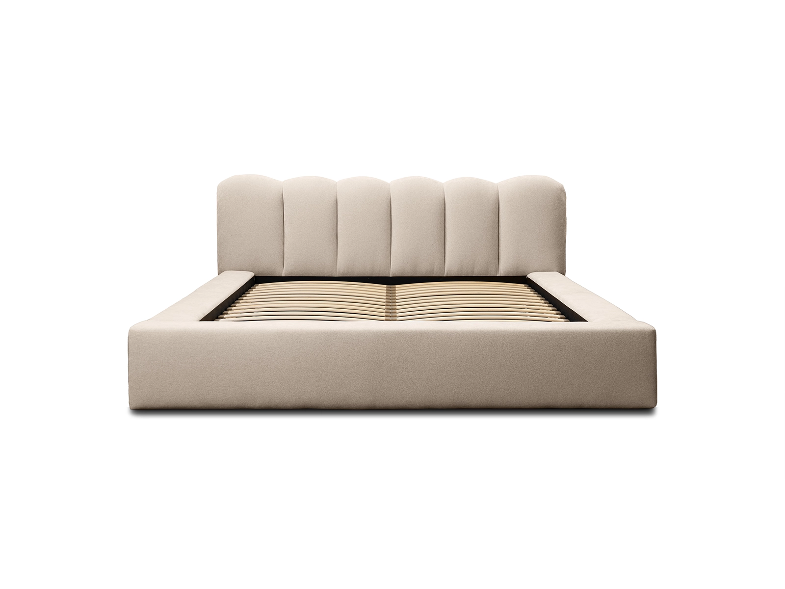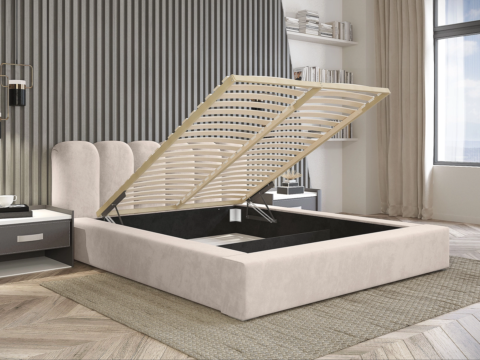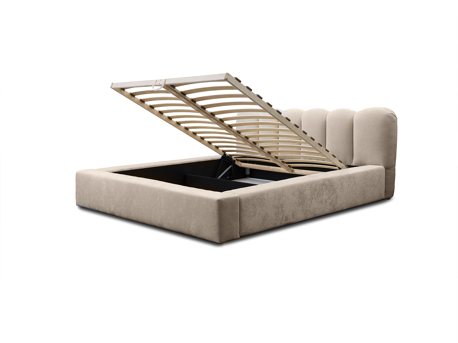Łóżko tapicerowane 160x200 ROSARIO beżowa tkanina z pojemnikiem i stelażem