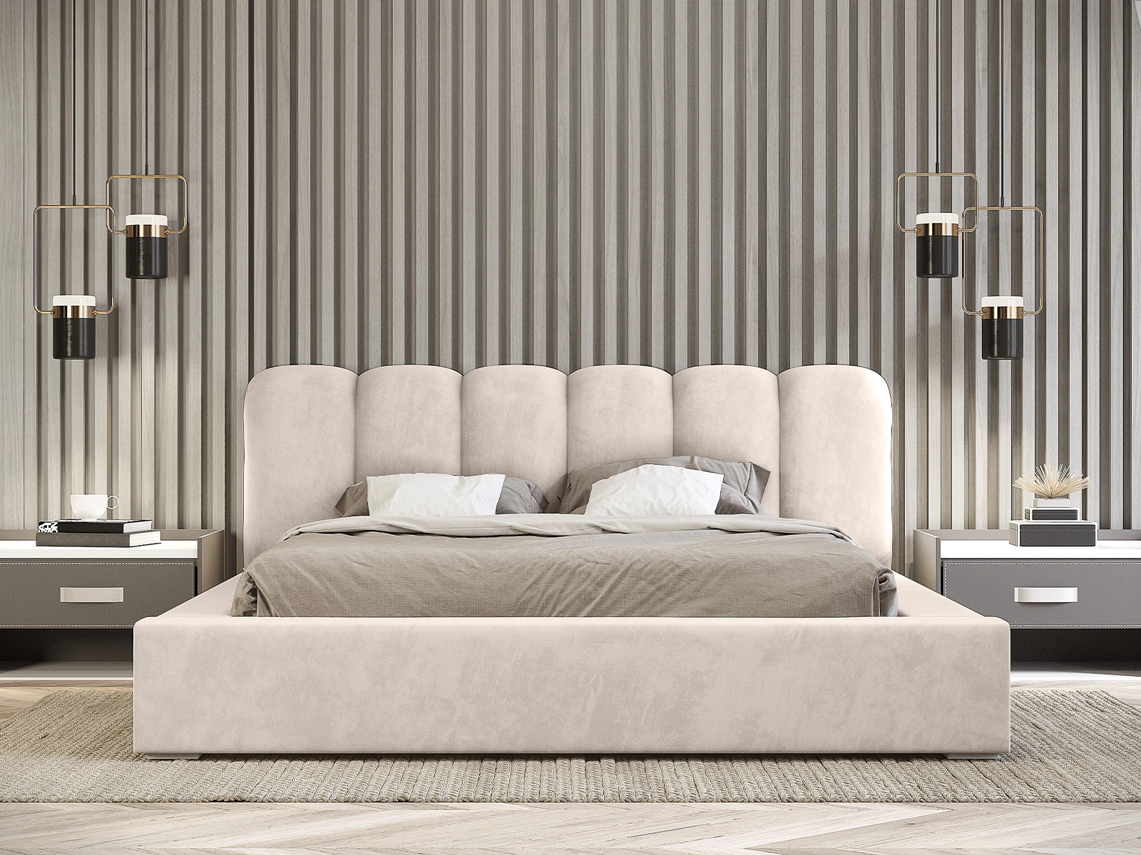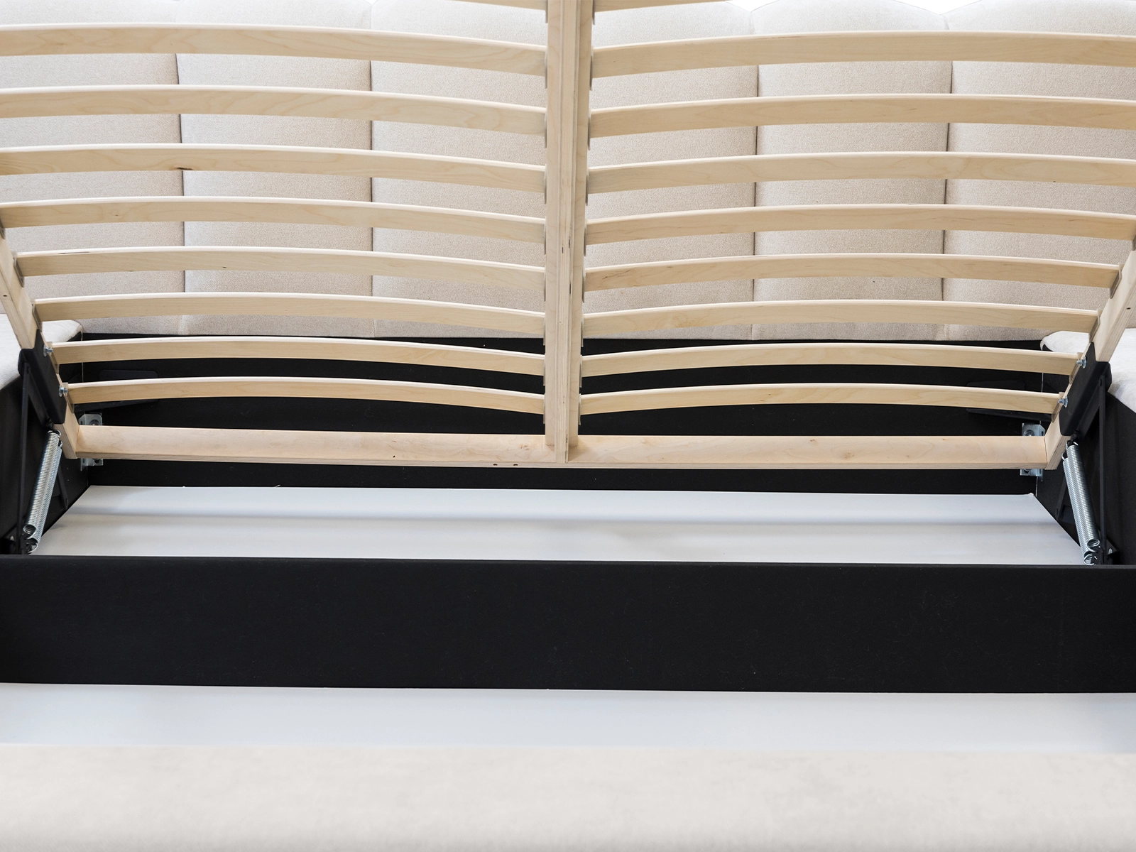 Łóżko tapicerowane 160x200 ROSARIO ze stelażem i pojemnikiem beżowe szenilowe