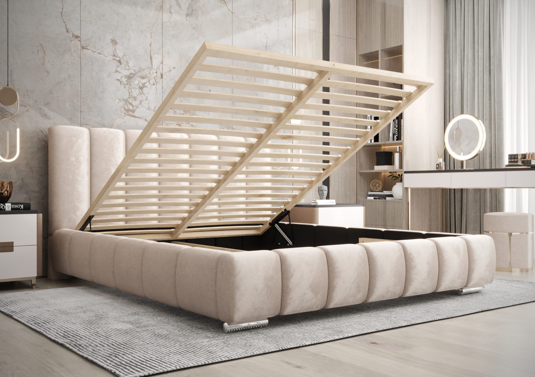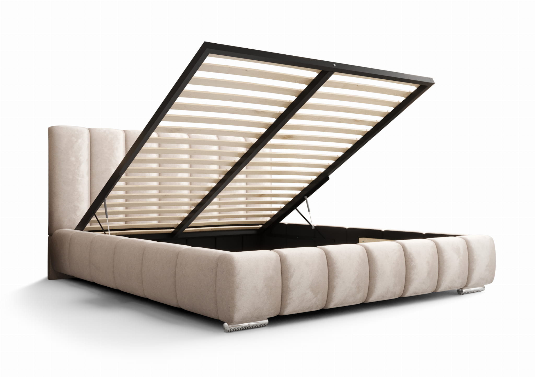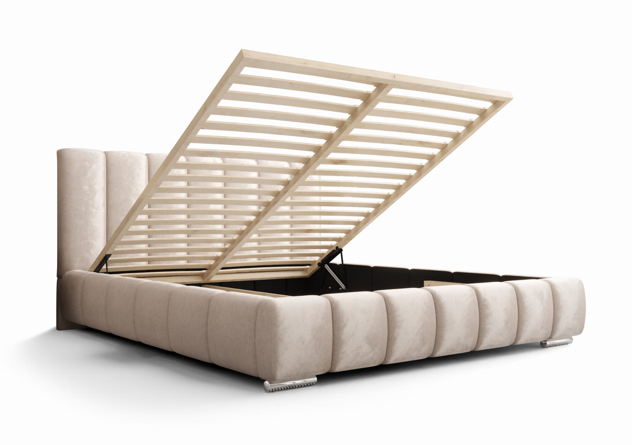 Łóżko tapicerowane 160x200 RUBEL z pojemnikiem i stelażem beżowy welur
