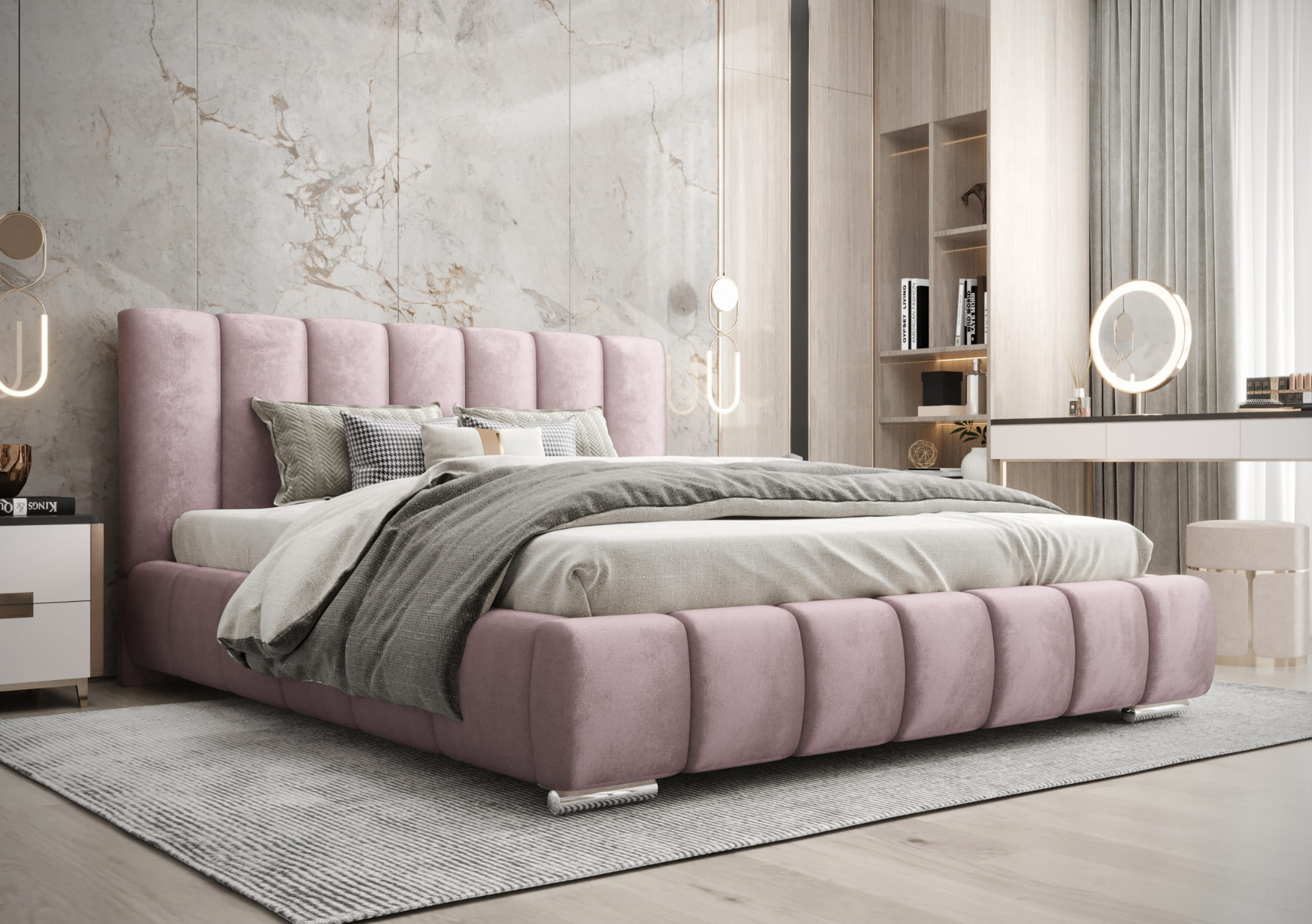 Łóżko tapicerowane Rubel to idealne połączenie elegancji i funkcjonalności. Jego nowoczesny design sprawia, że doskonale wpisuje się w każde wnętrze, dodając mu szyku i stylu. Wyposażone w praktyczny pojemnik na pościel, zapewnia wygodne przechowywanie kołder, poduszek i innych tekstyliów, pomagając utrzymać porządek w sypialni. Solidny stelaż gwarantuje stabilność oraz komfortowy sen przez wiele lat.