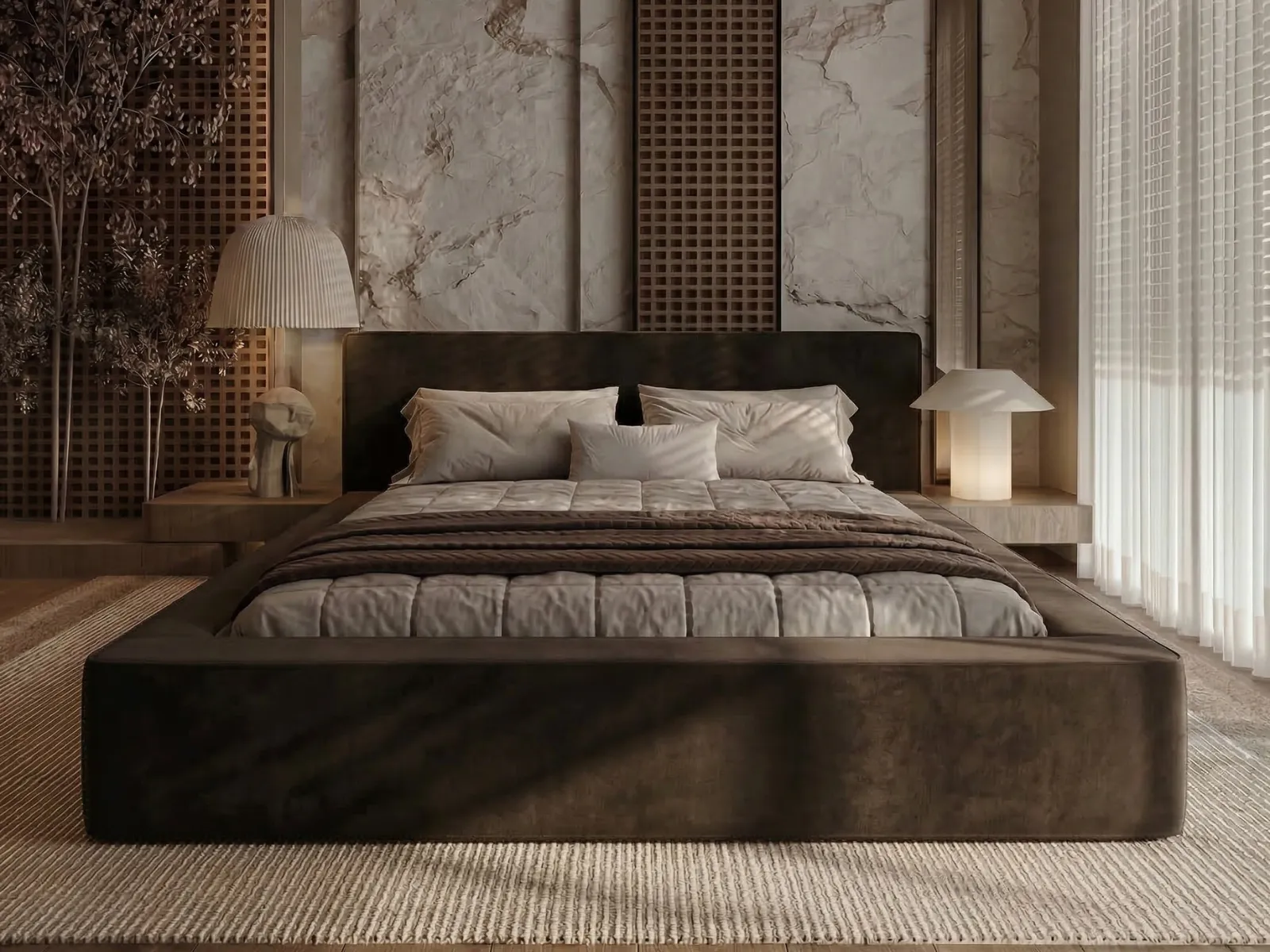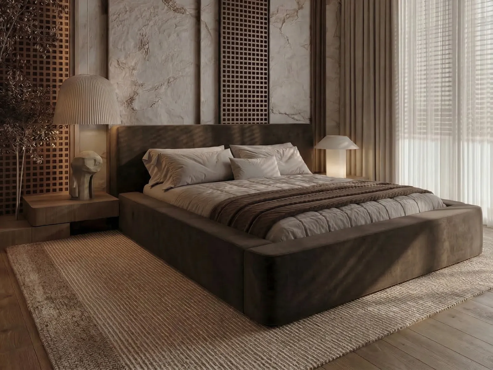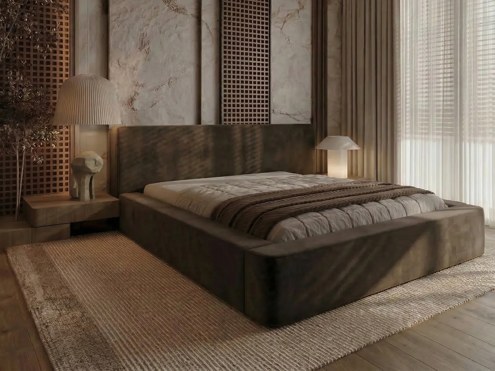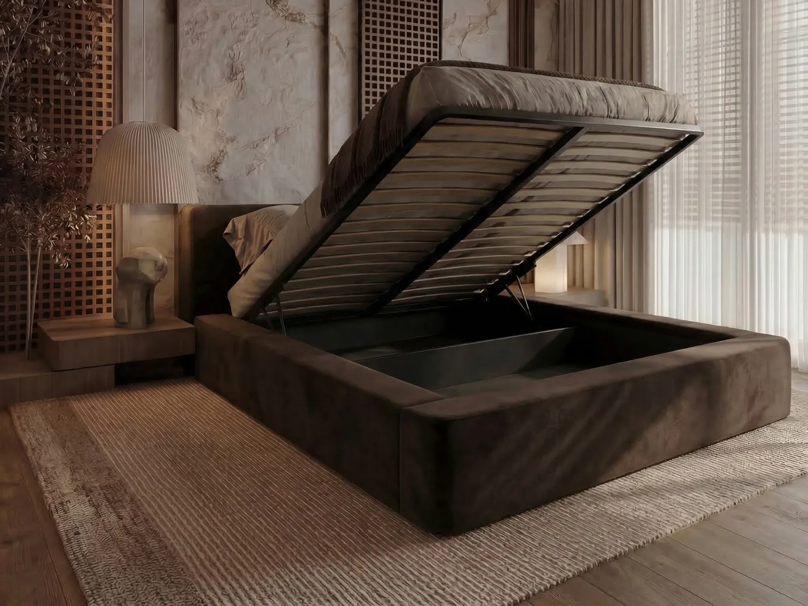 Łóżko tapicerowane 160x200 z pojemnikiem i stelażem DAISY brązowe welurowe