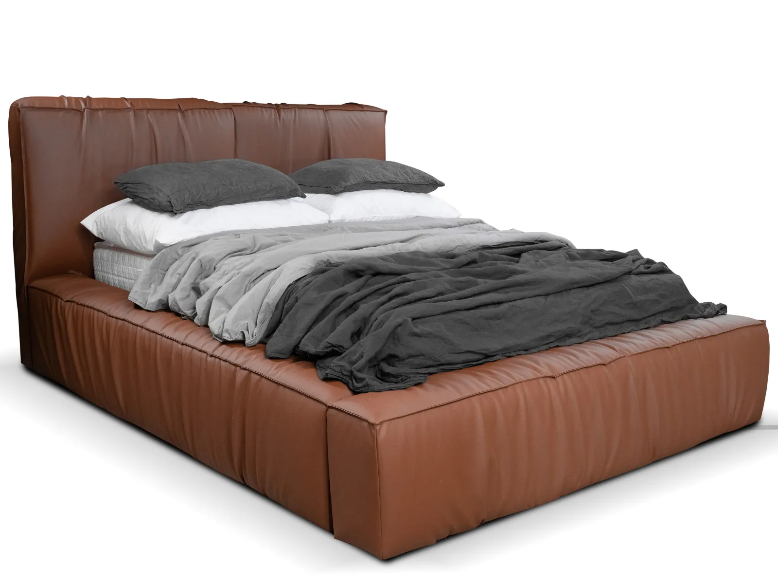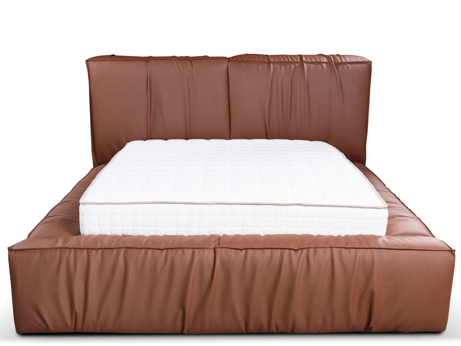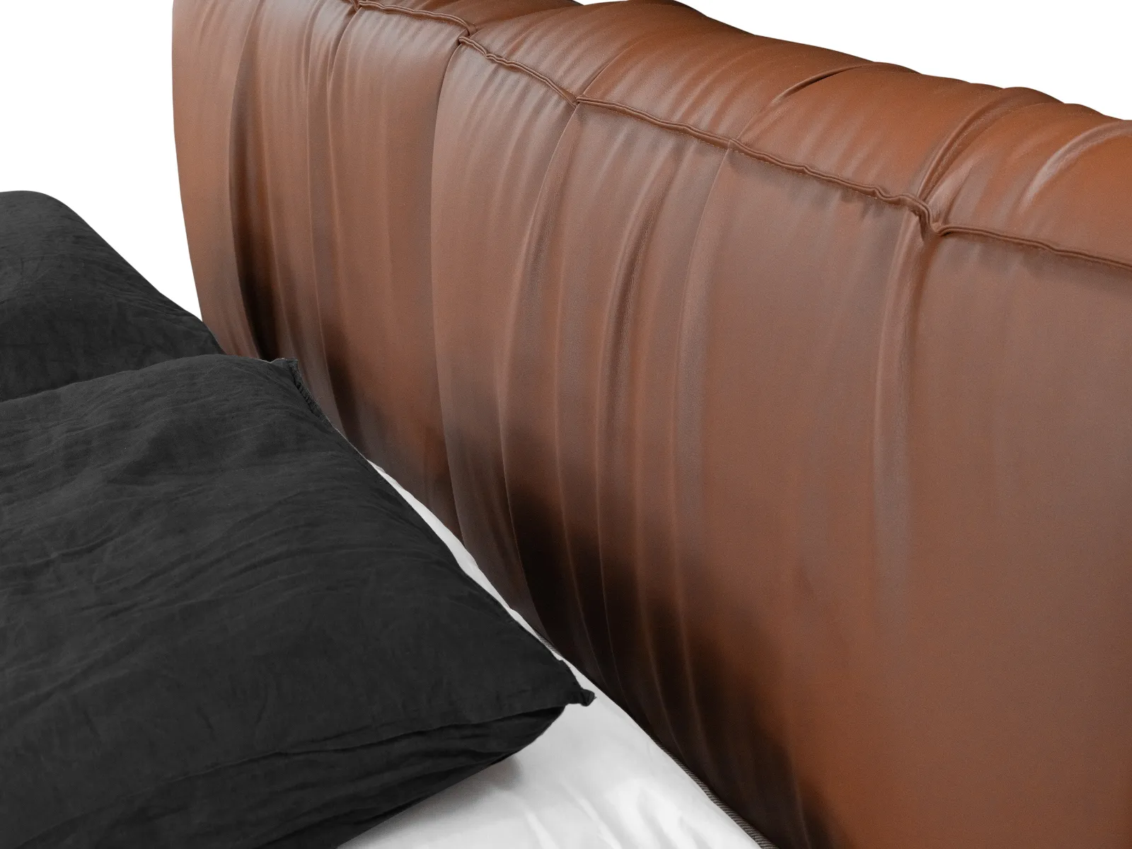 Łóżko tapicerowane 180x200 ARVELLA z pojemnikiem i metalowym stelażem brązowa ekoskóra
