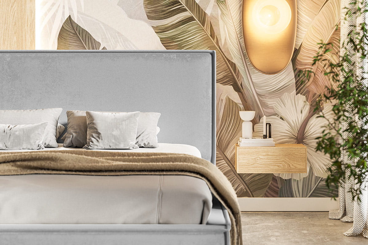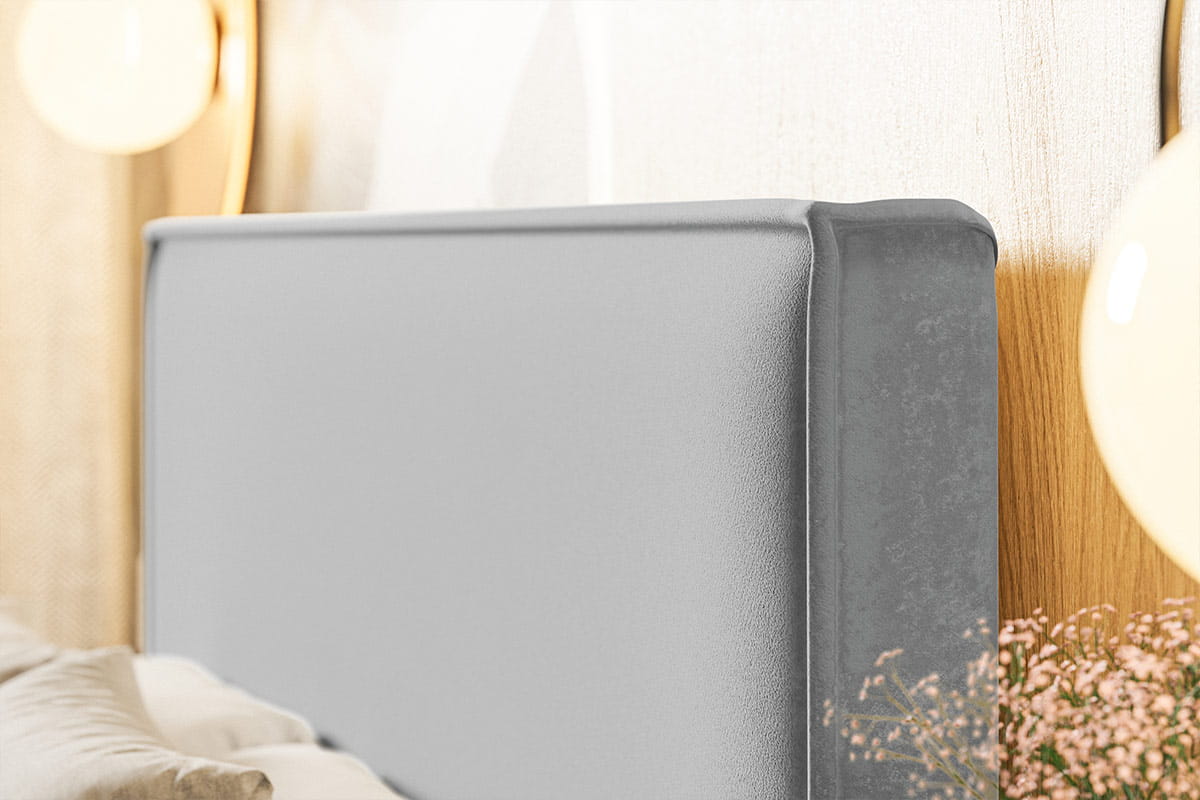 Tapicerowane szarym welurem, łóżko Flano Slim emanuje subtelnym luksusem, który dodaje wnętrzu przytulności i klasy. Jego smukła konstrukcja sprawia, że pasuje zarówno do małych, jak i dużych sypialni, a stylowy kolor szarości wkomponuje się w różne style wnętrzarskie, od klasycznych po skandynawskie.