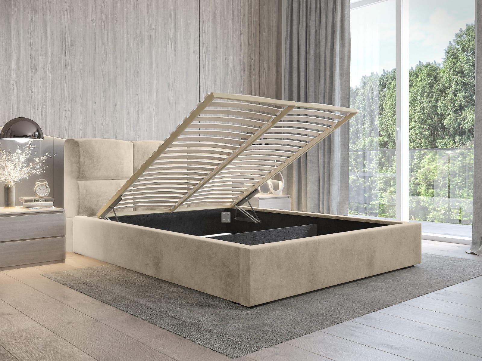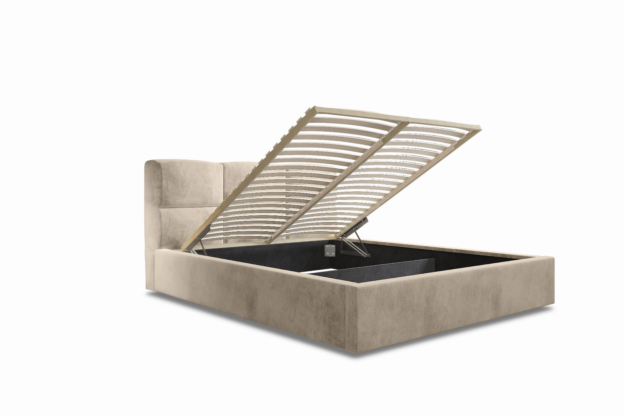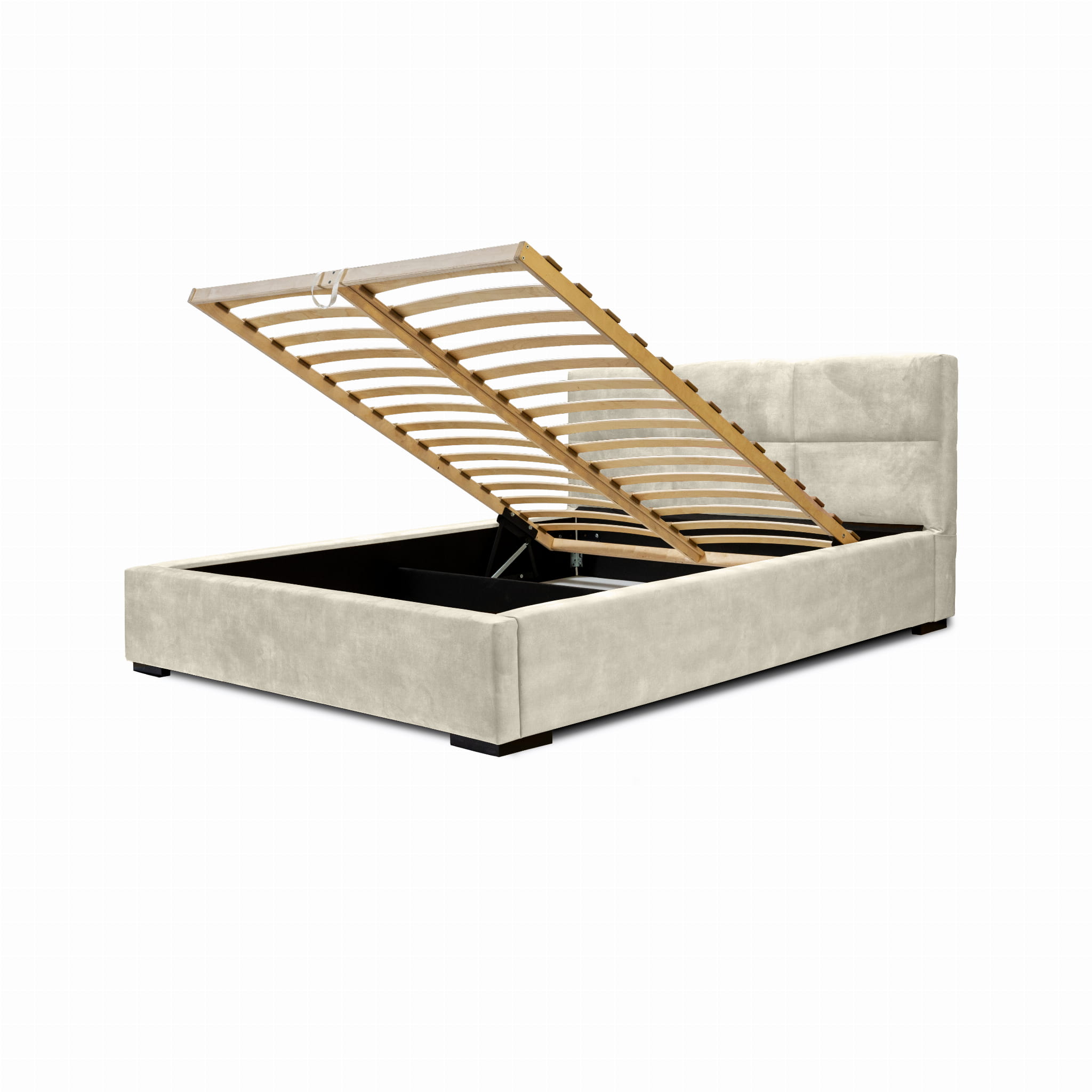 Łóżko tapicerowane 180x200 LEMON z pojemnikiem na pościel i stelażem beżowy welur