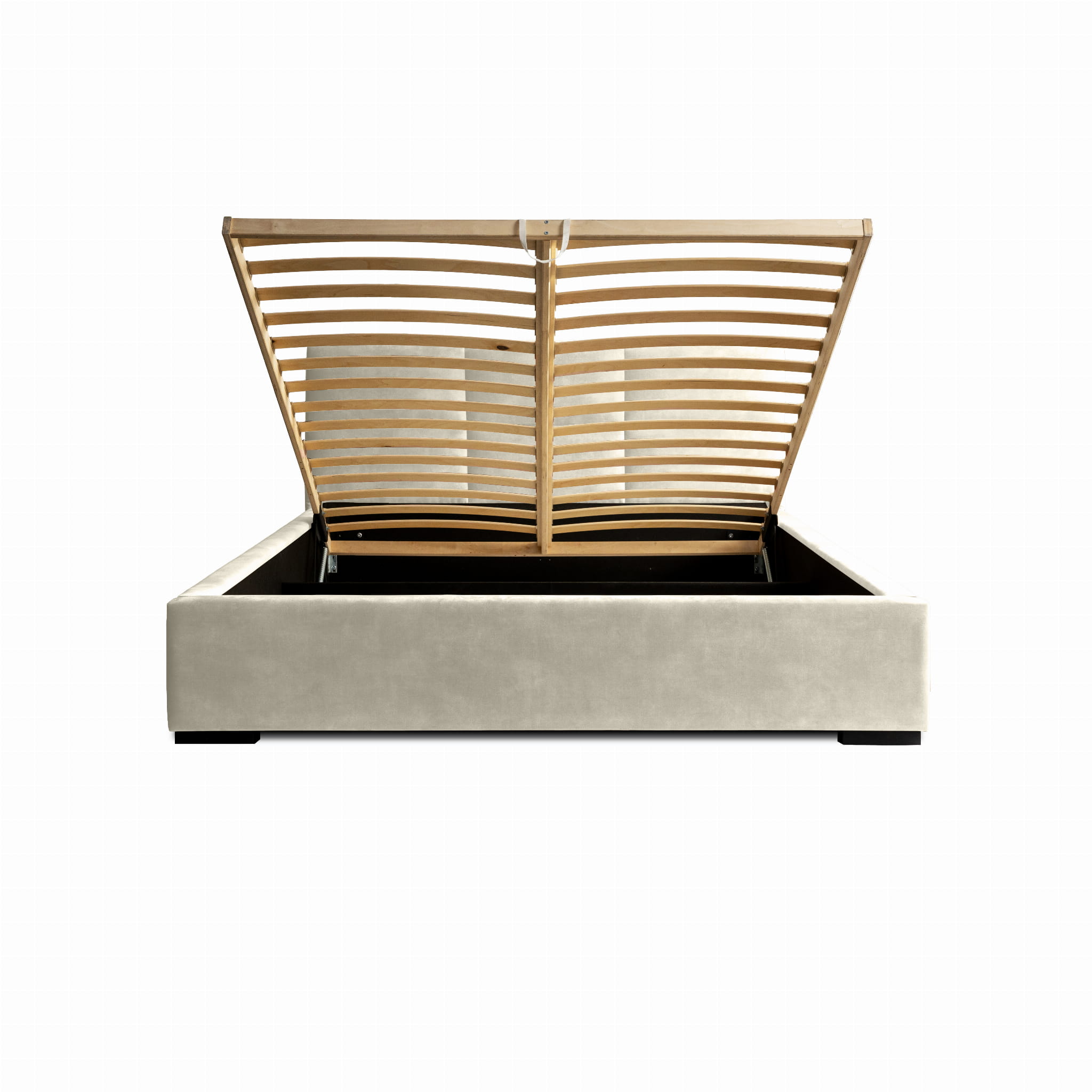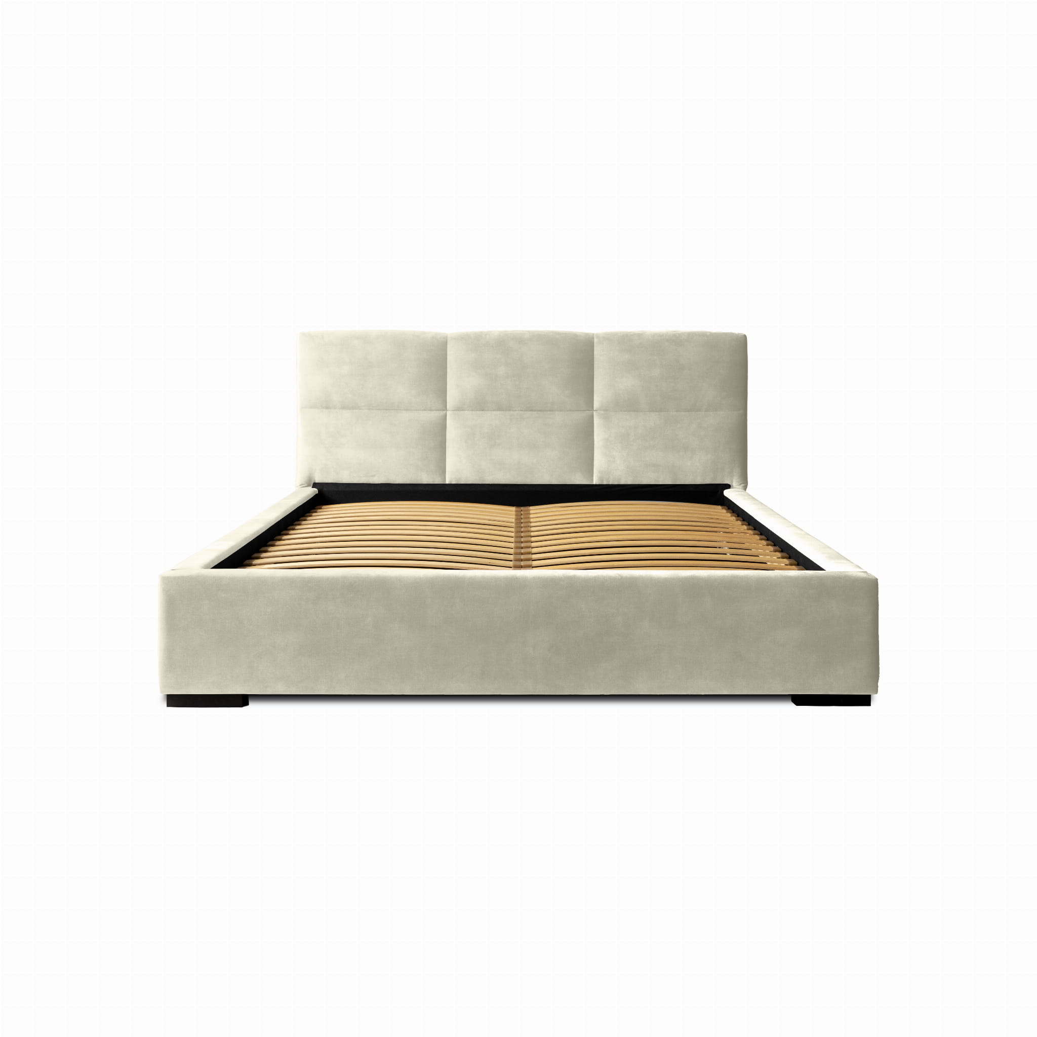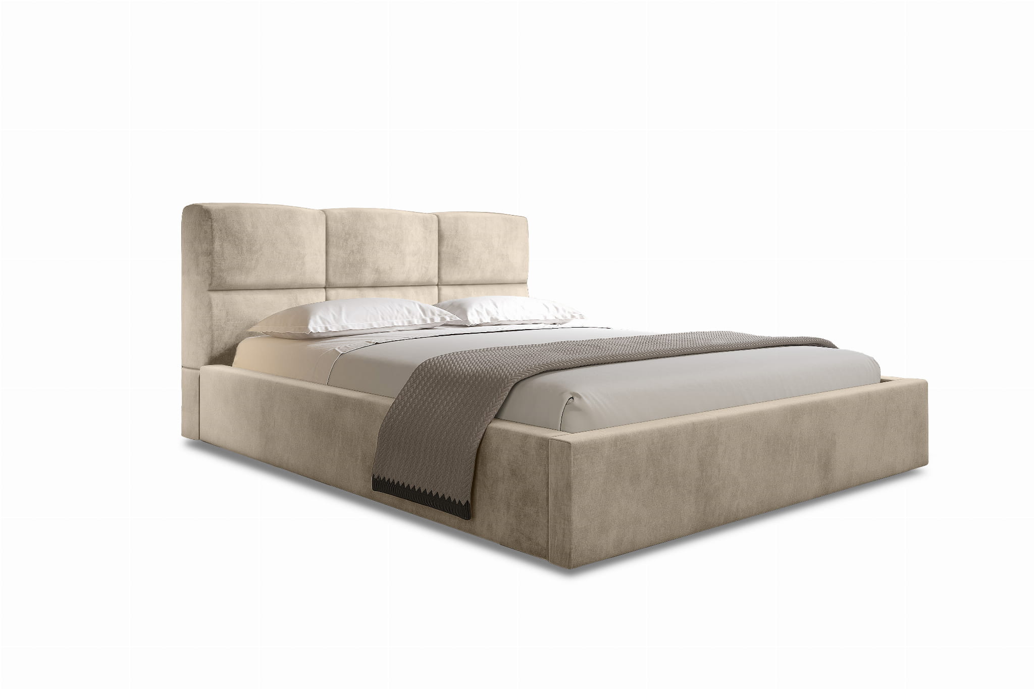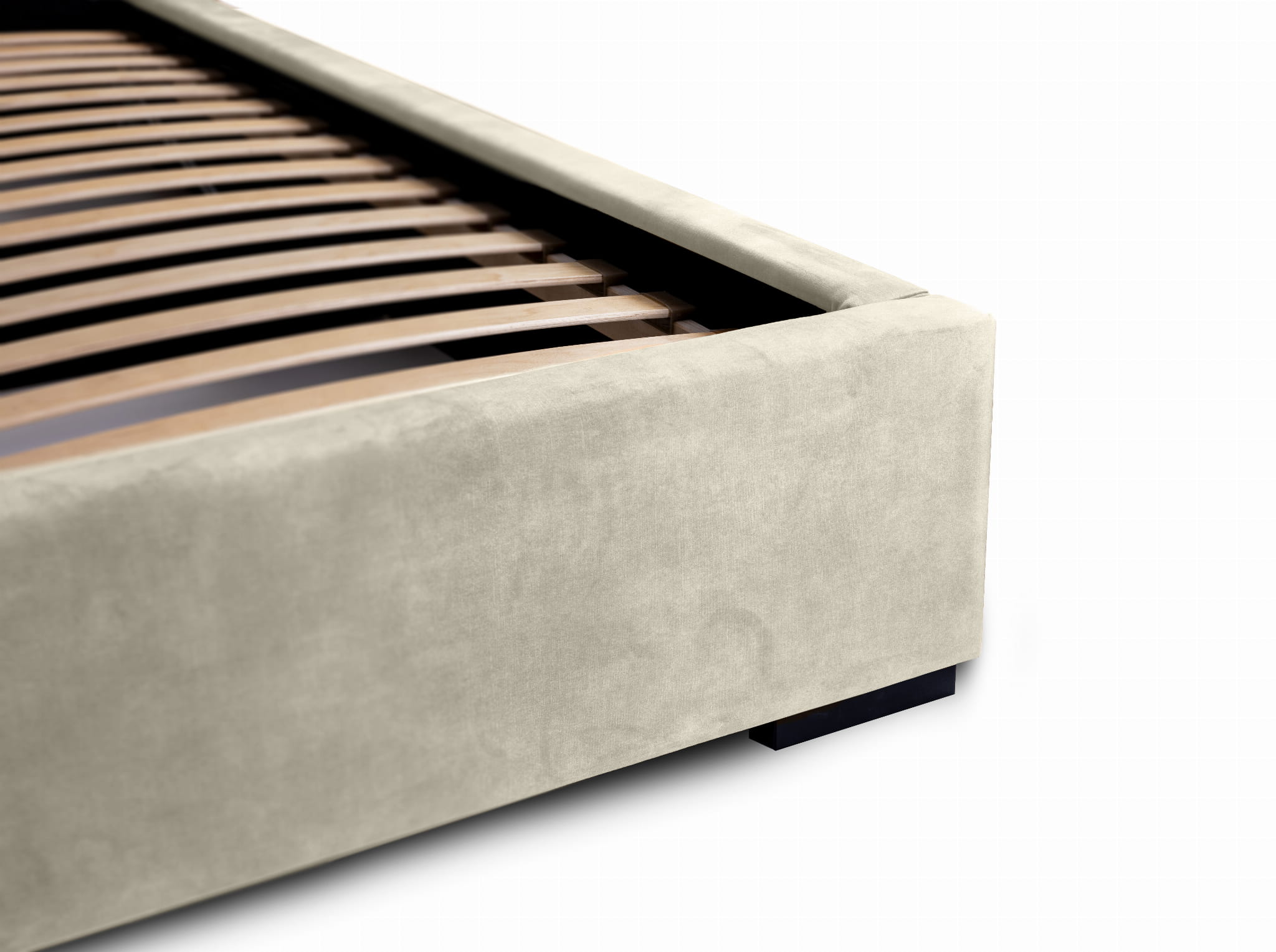 Łóżko tapicerowane 180x200 LEMON z pojemnikiem na pościel i stelażem beżowy welur