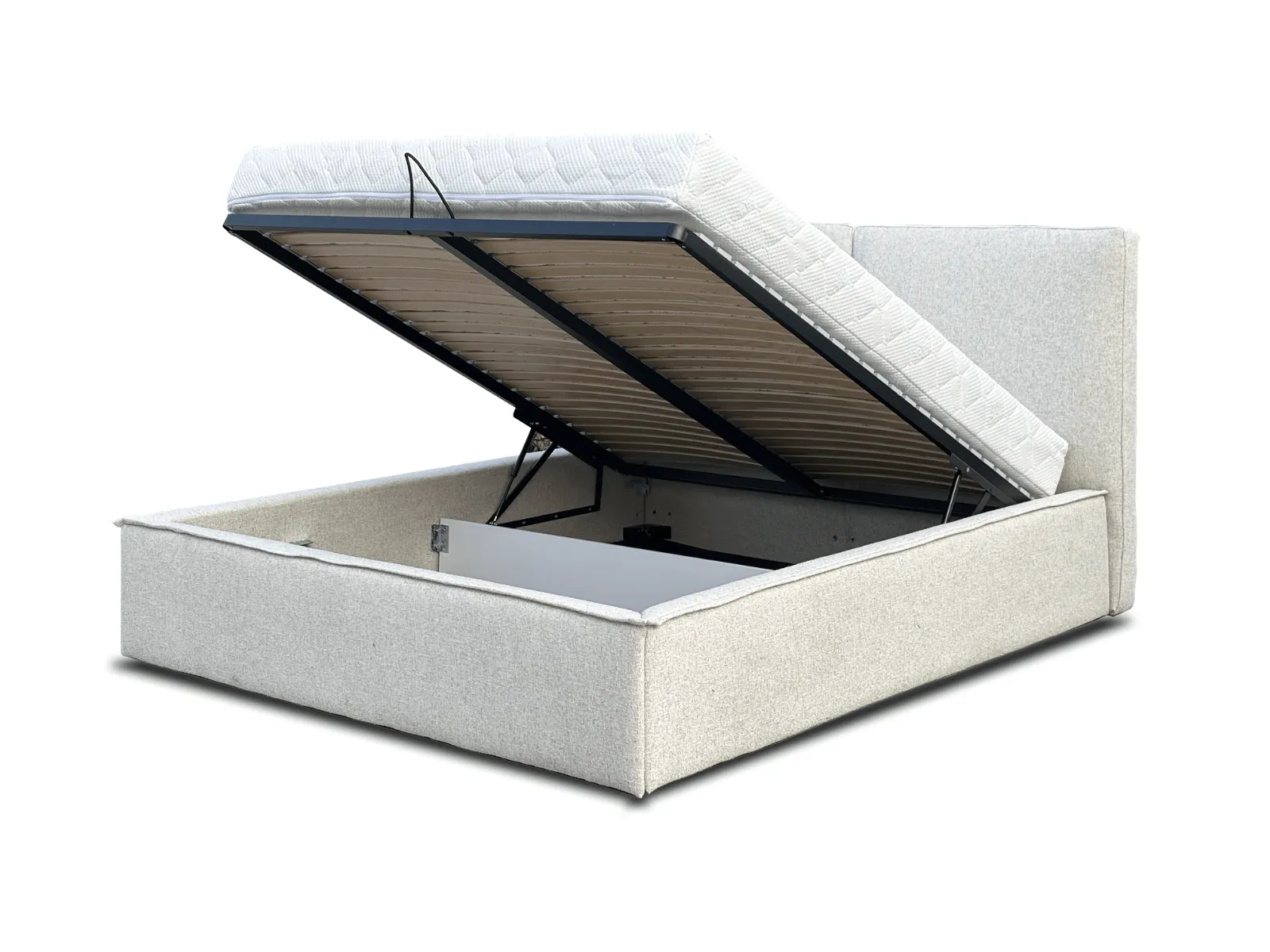 Łóżko tapicerowane 180x200 LEVANA z metalowym stelażem i pojemnikiem na pościel beżowy szenil