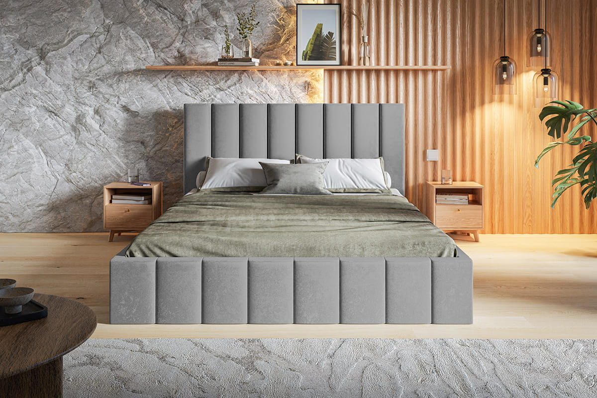 Łóżko tapicerowane 180x200 LUKE SLIM z pojemnikiem i stelażem szary welur