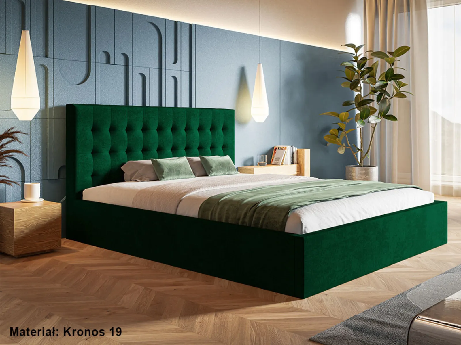 - Bogaty wybór tkanin obiciowych – szeroka paleta kolorystyczna i różne struktury materiałów pozwalają dopasować łóżko do indywidualnych preferencji.