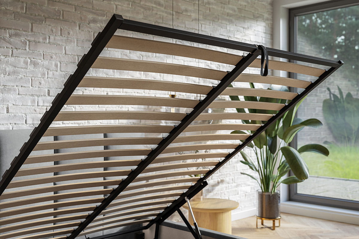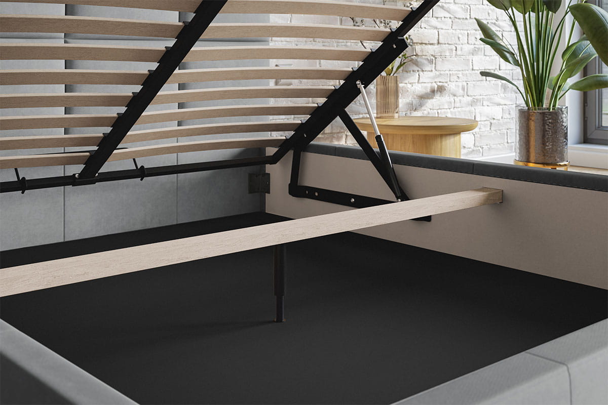 Łóżko tapicerowane 180x200 PORTO SLIM z pojemnikiem i stelażem, szary welur