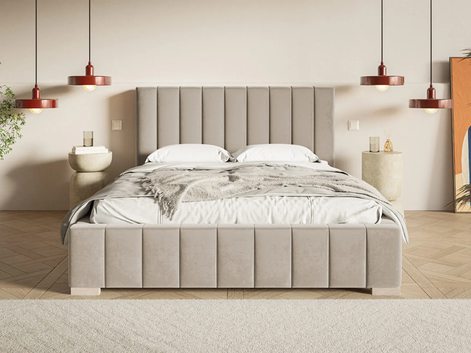 Łóżko tapicerowane 180x200 RAVENNA z pojemnikiem i stelażem, beżowy welur
