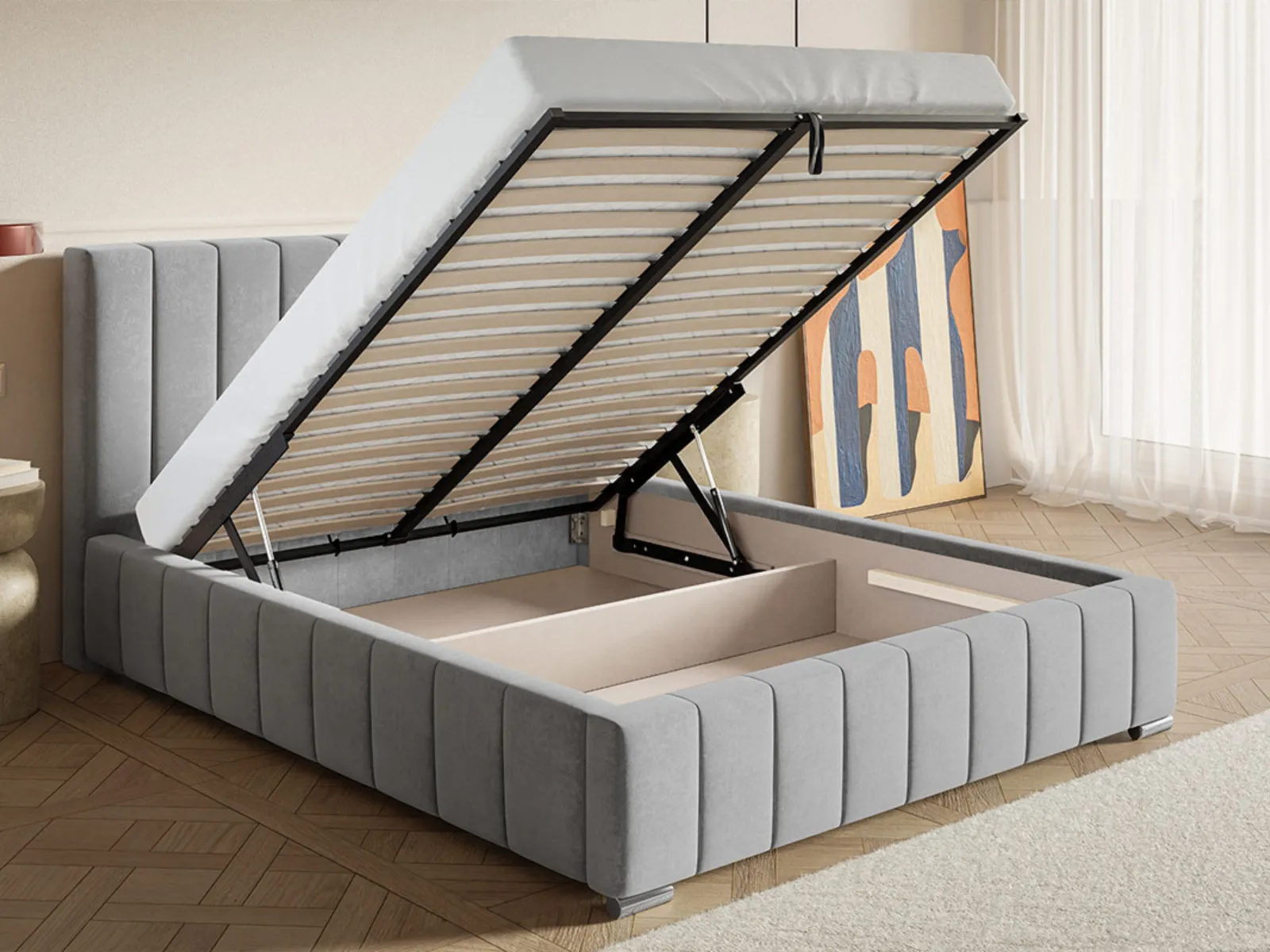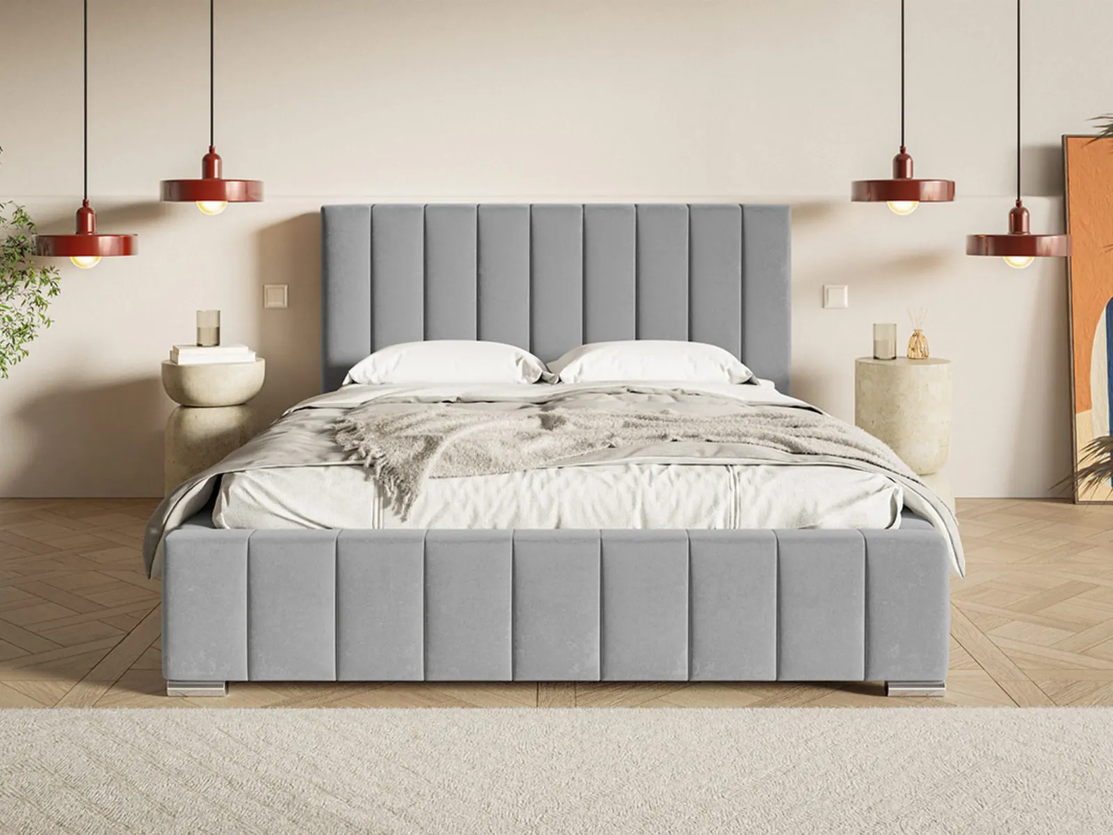 Łóżko tapicerowane 180x200 RAVENNA z pojemnikiem i stelażem szary welur