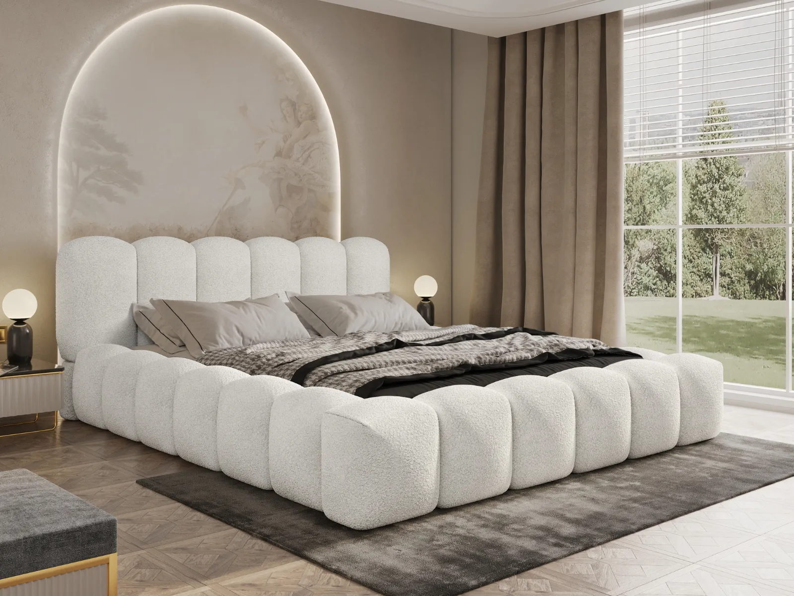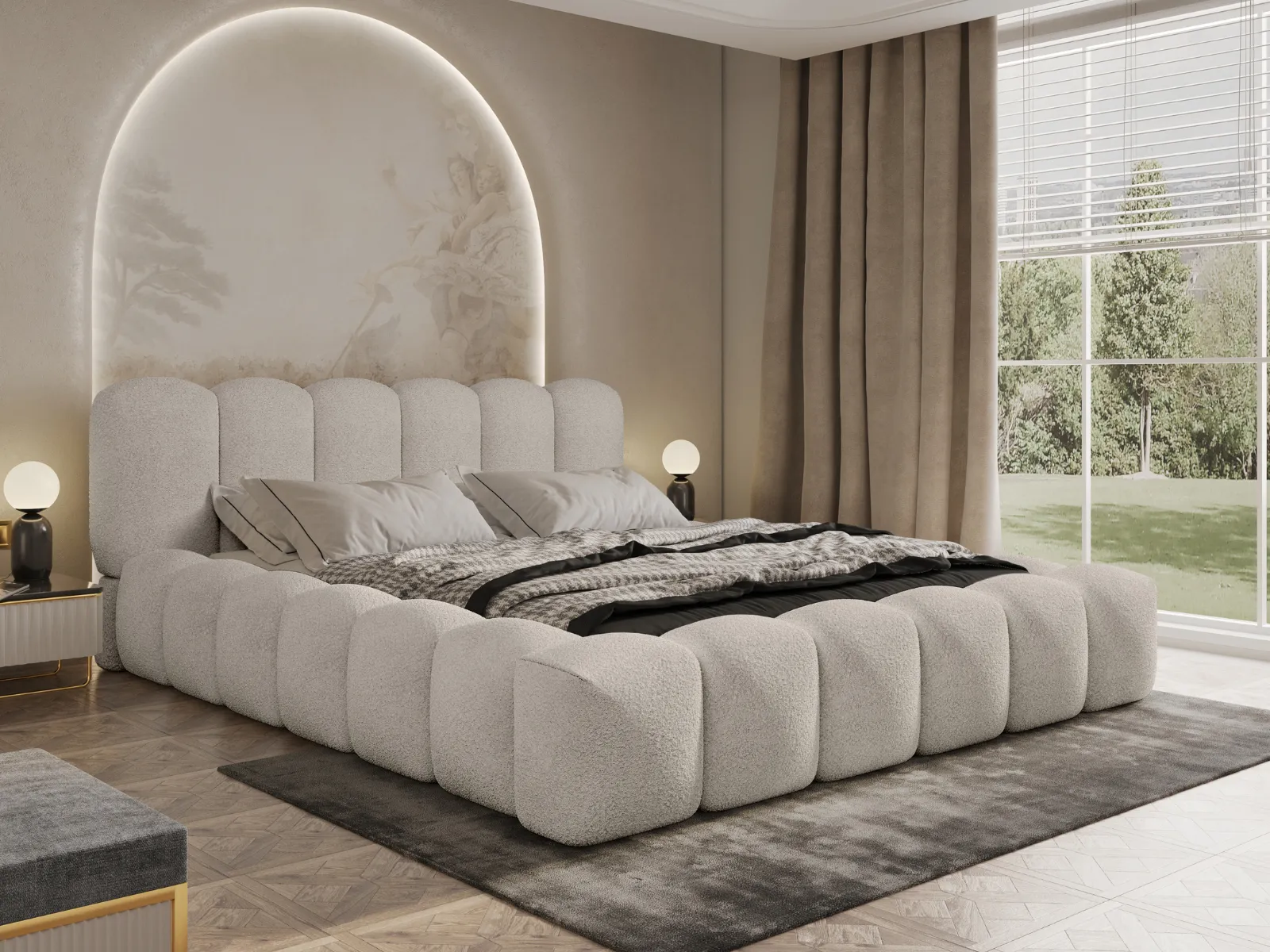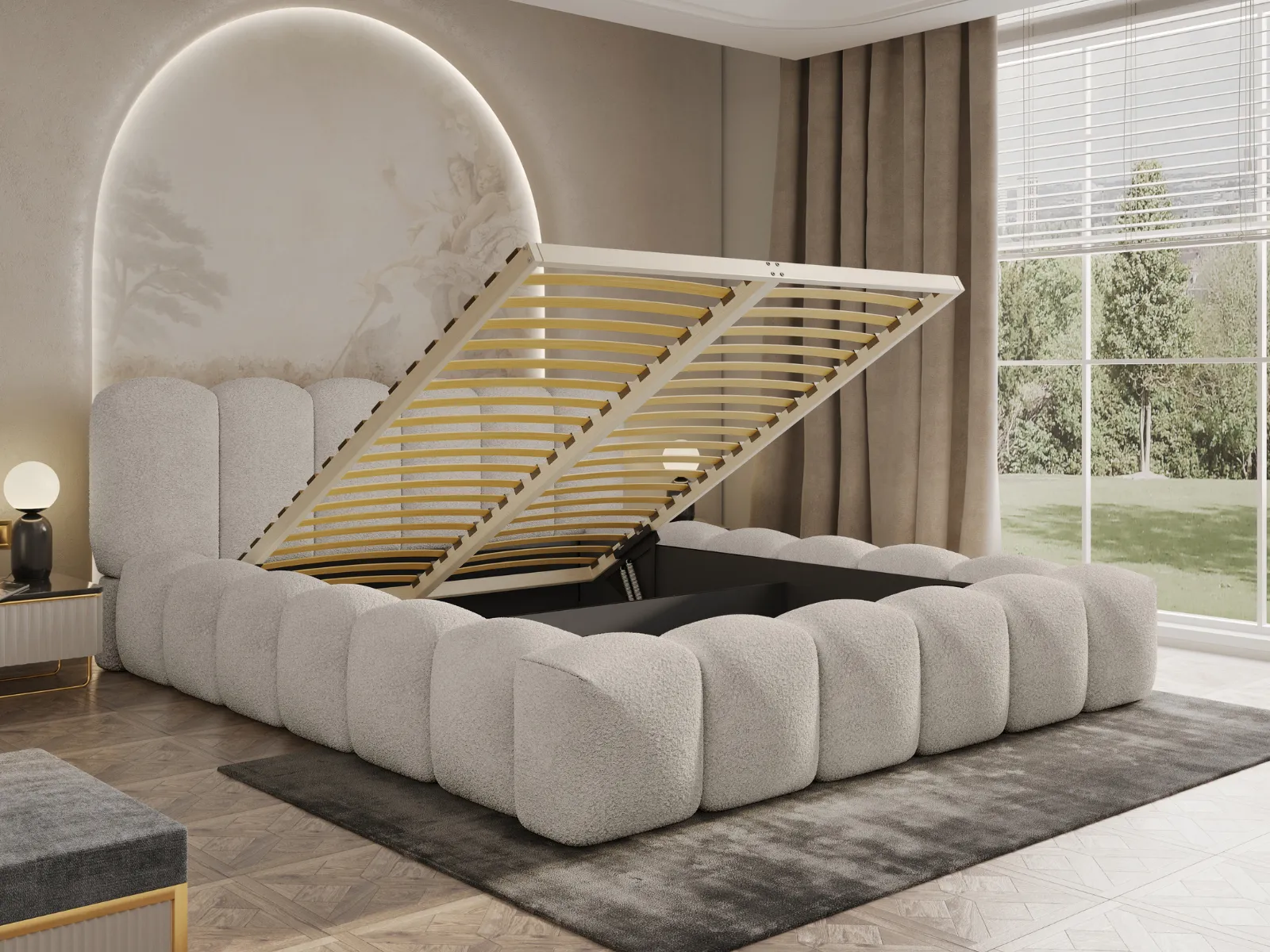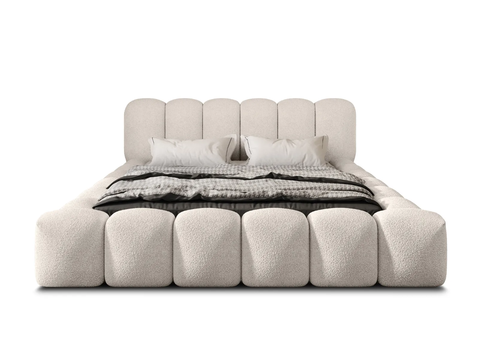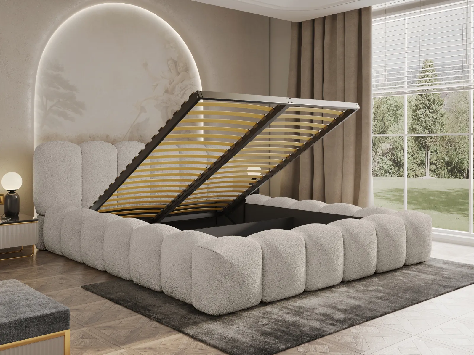Łóżko tapicerowane 180x200 Rosa z pojemnikiem i stelażem w tkaninie bouclé Quelle ecru