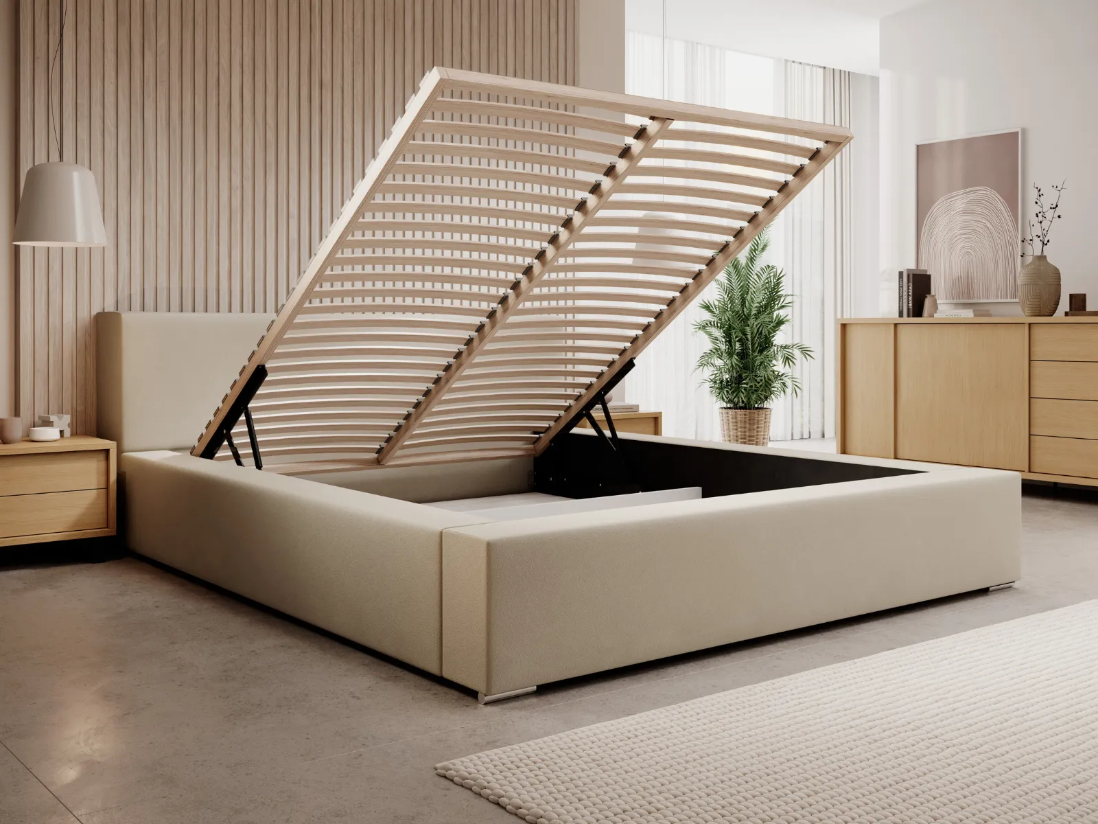 Łóżko tapicerowane 180x200 VENTO z pojemnikiem i stelażem, beżowy welur