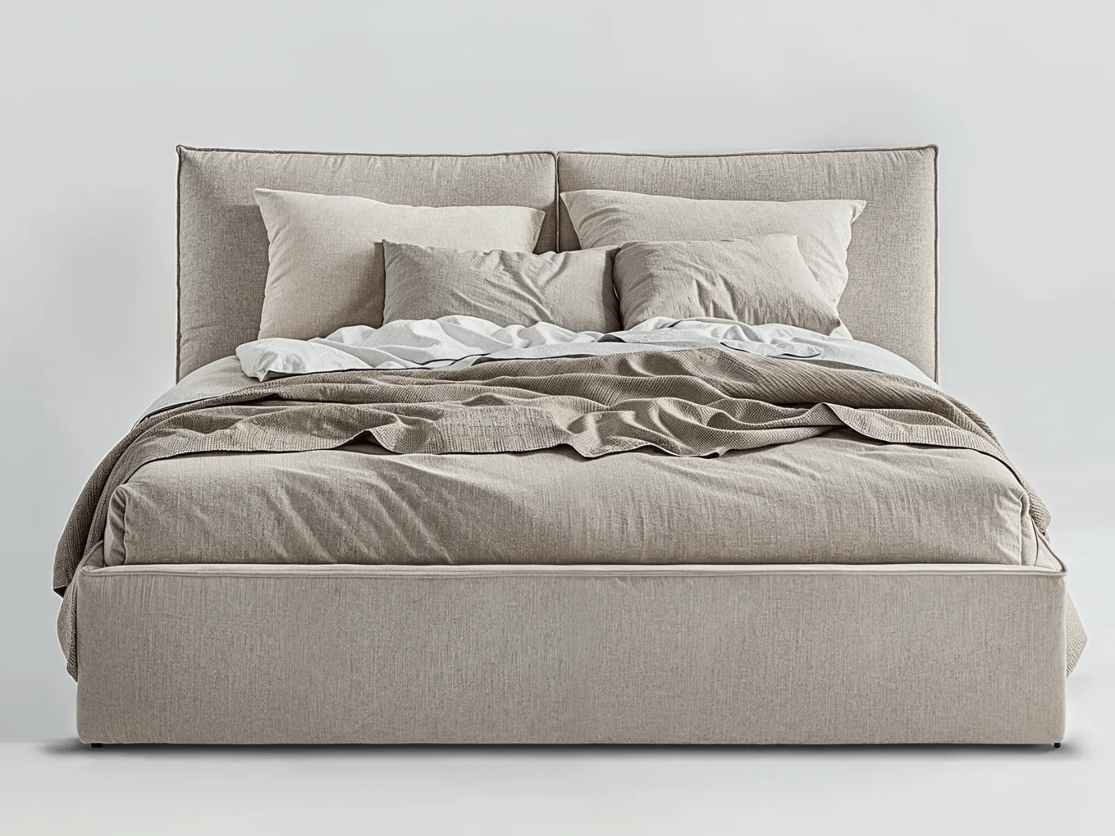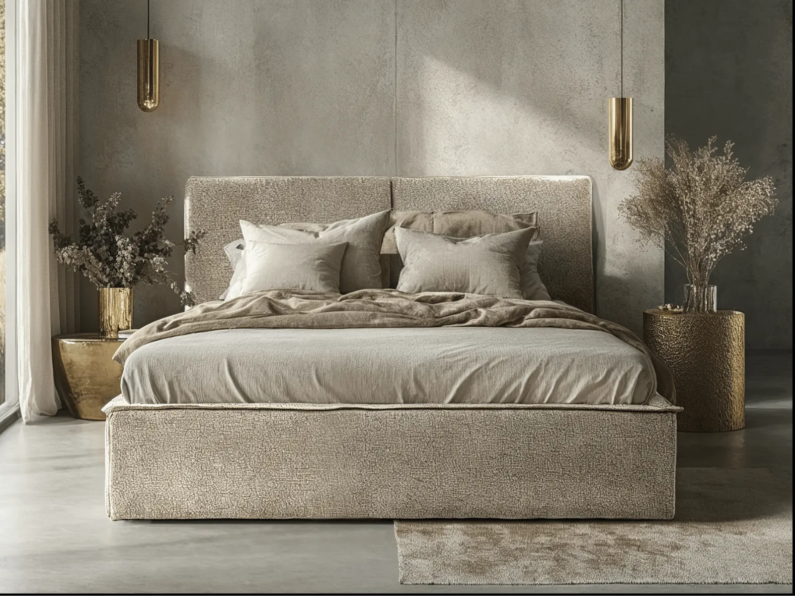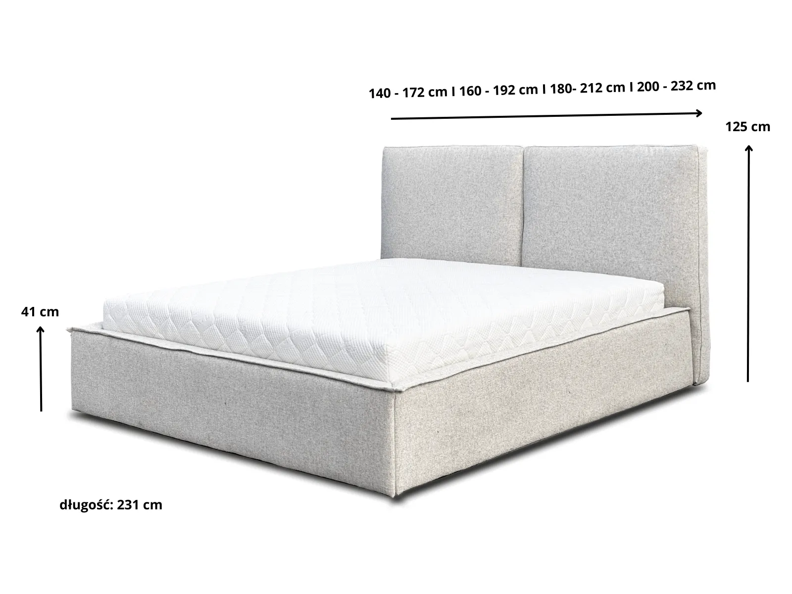 Łóżko tapicerowane 200x200 LEVANA z metalowym stelażem i pojemnikiem beżowy szenil